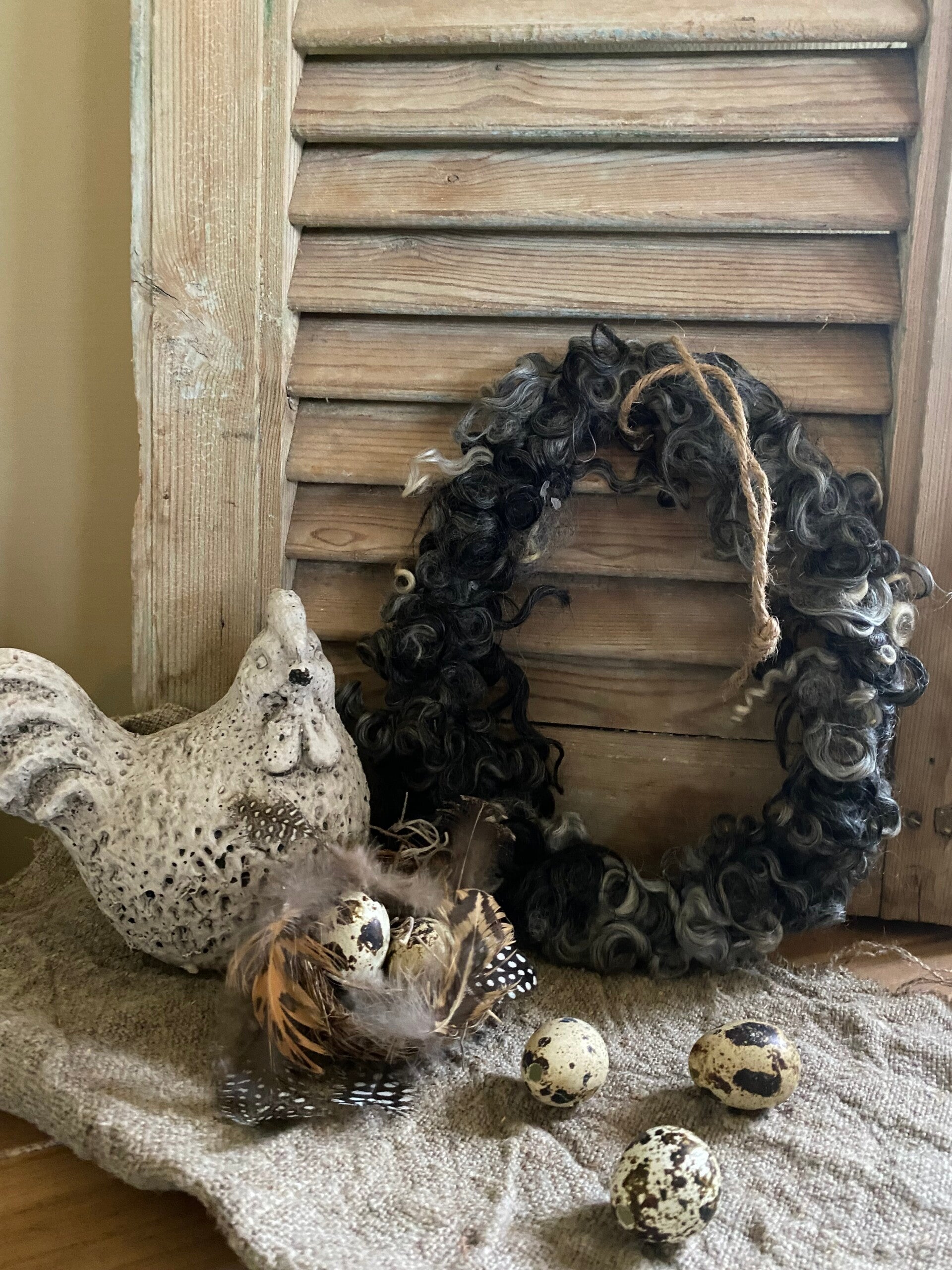 Prachtig krullend ei gemaakt van gotland schapenwol