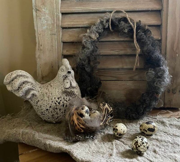 Prachtig krullend ei gemaakt van gotland schapenwol