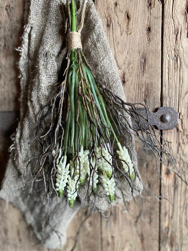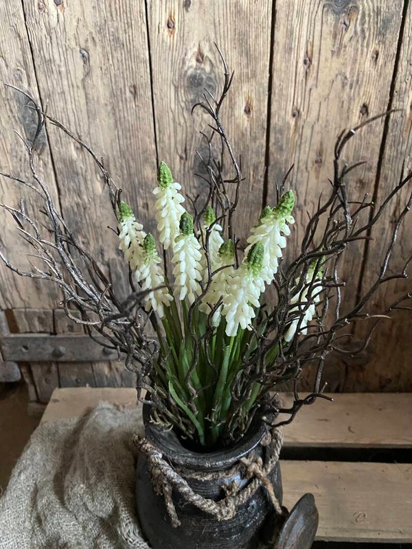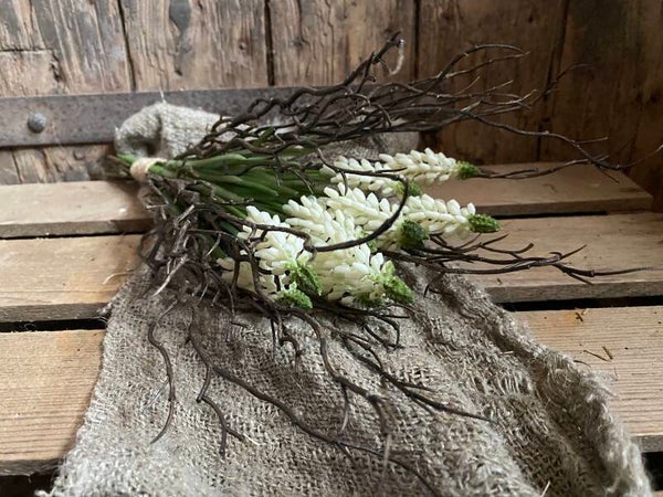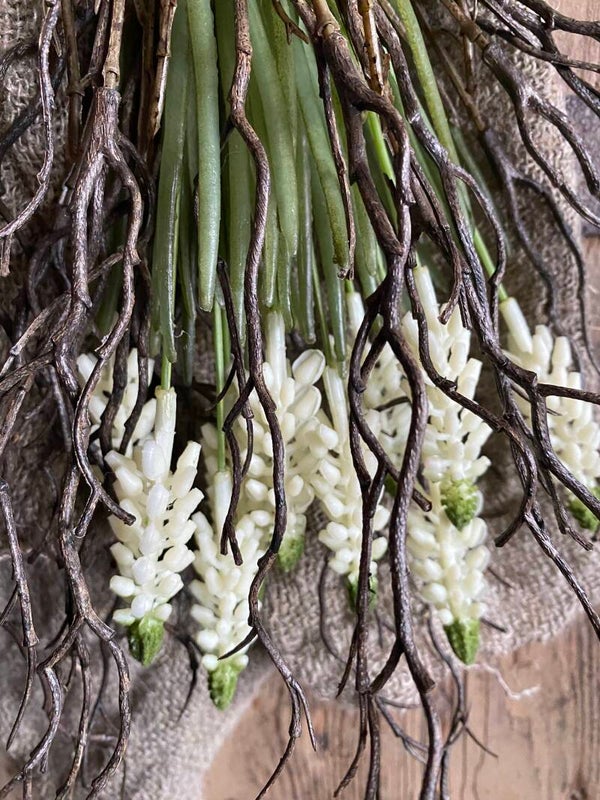Toef witte druifjes met wilgen takjes, gebonden met jutte touw