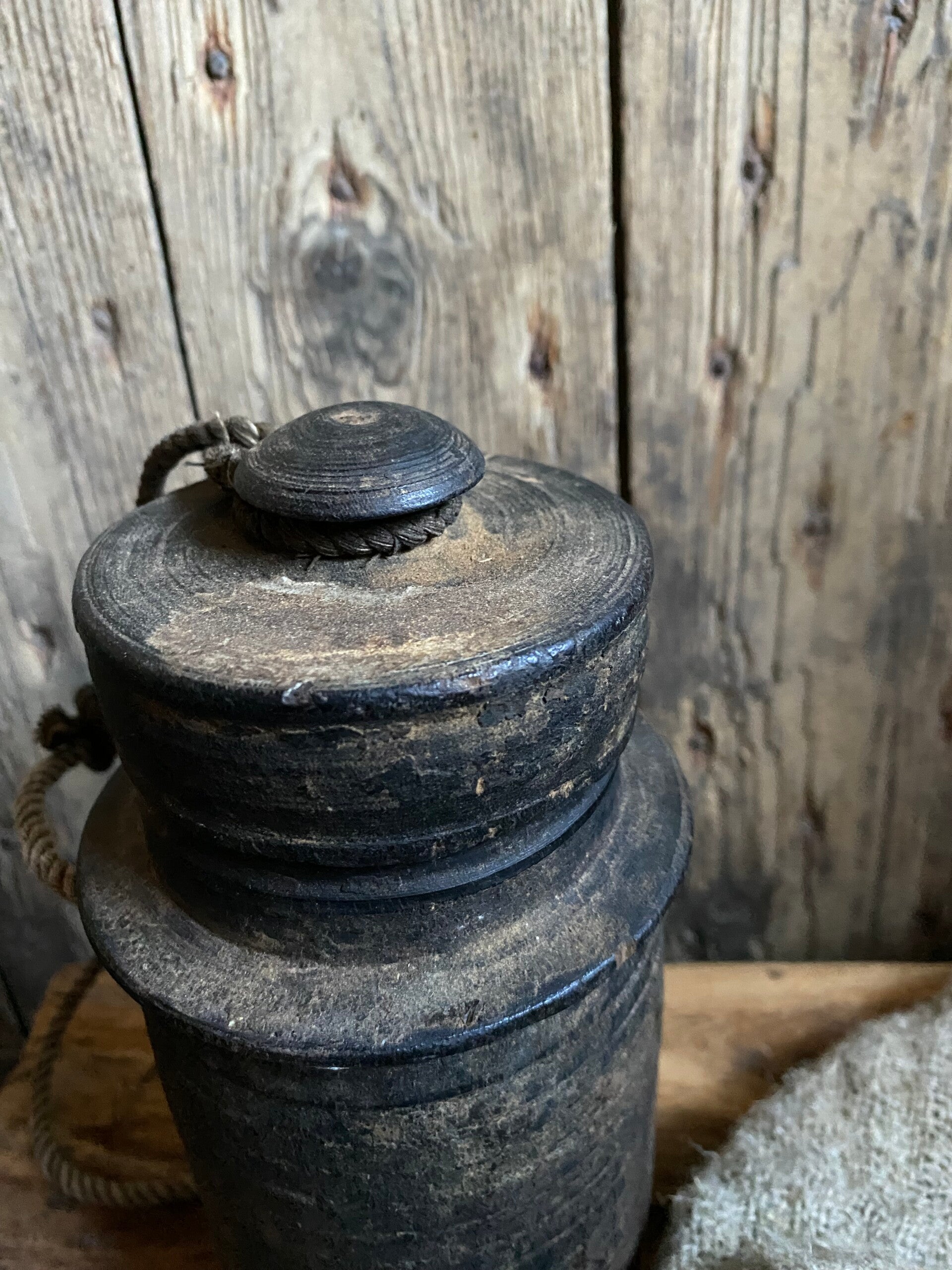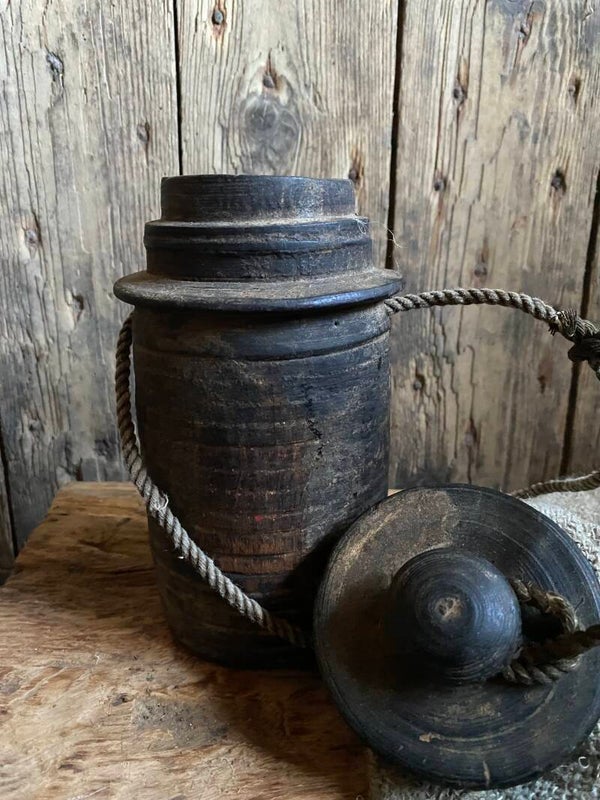 Oude Nepalese rond potje met deksel nr 5