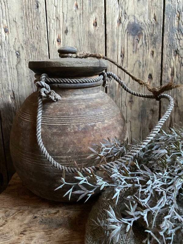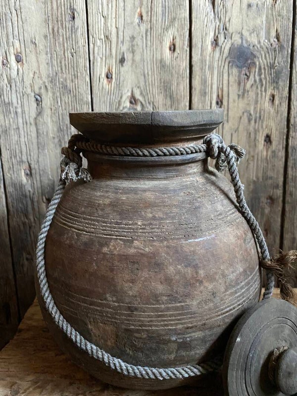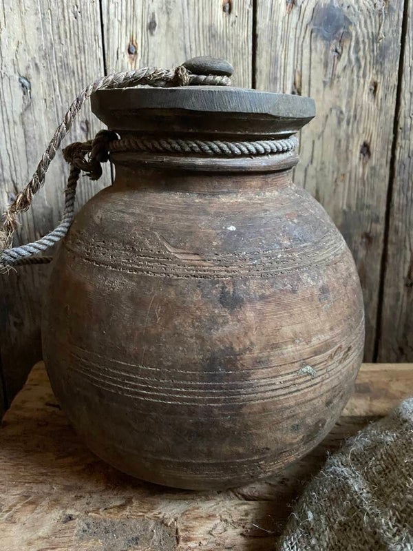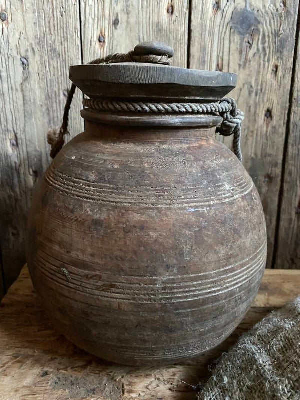 Oude Nepalese rond pot met deksel nr 6