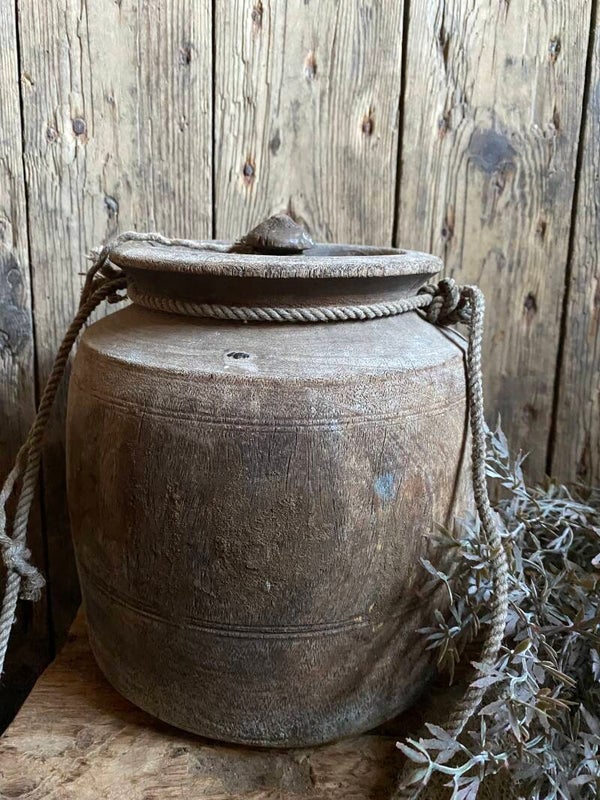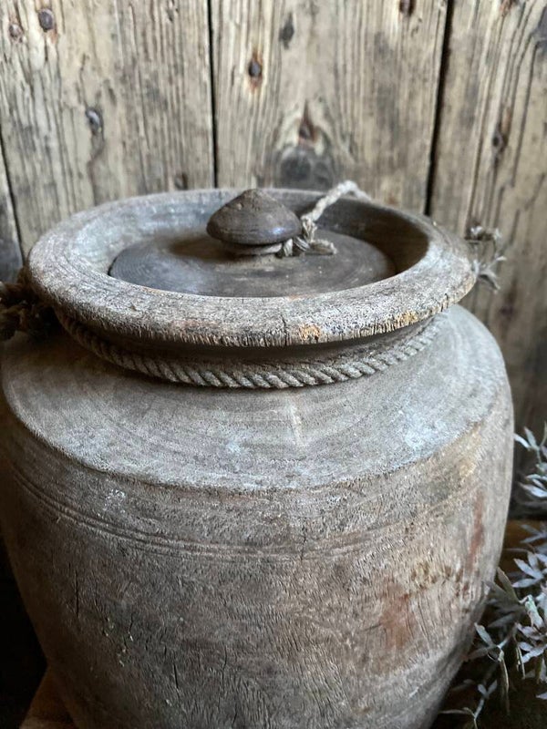 Oude Nepalese rond pot met deksel nr 7