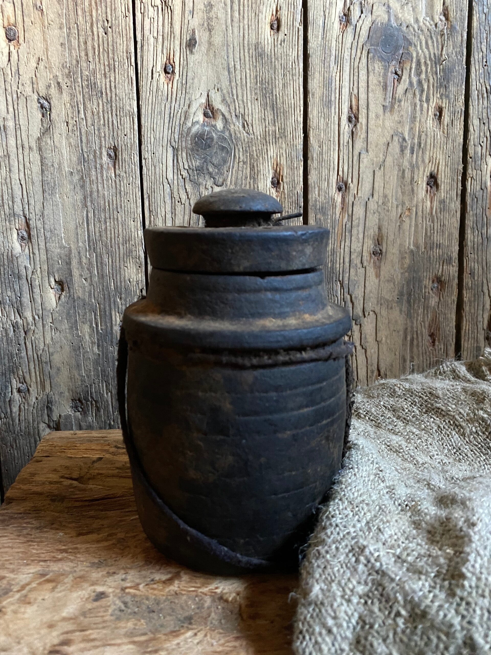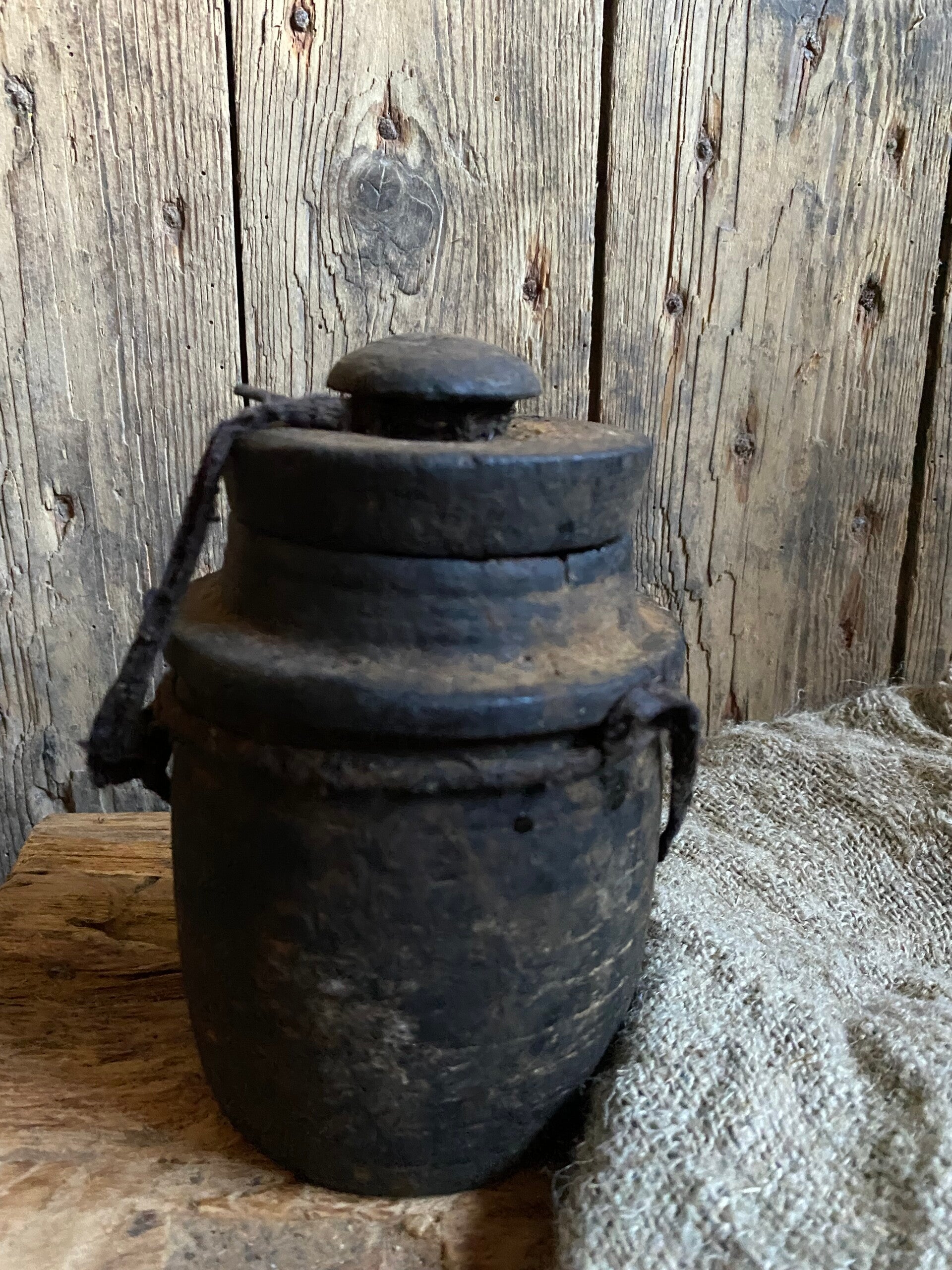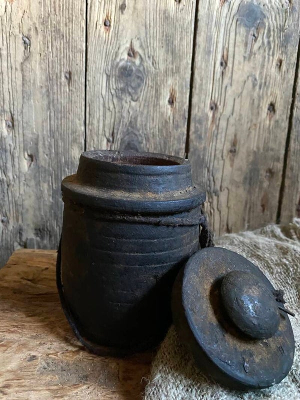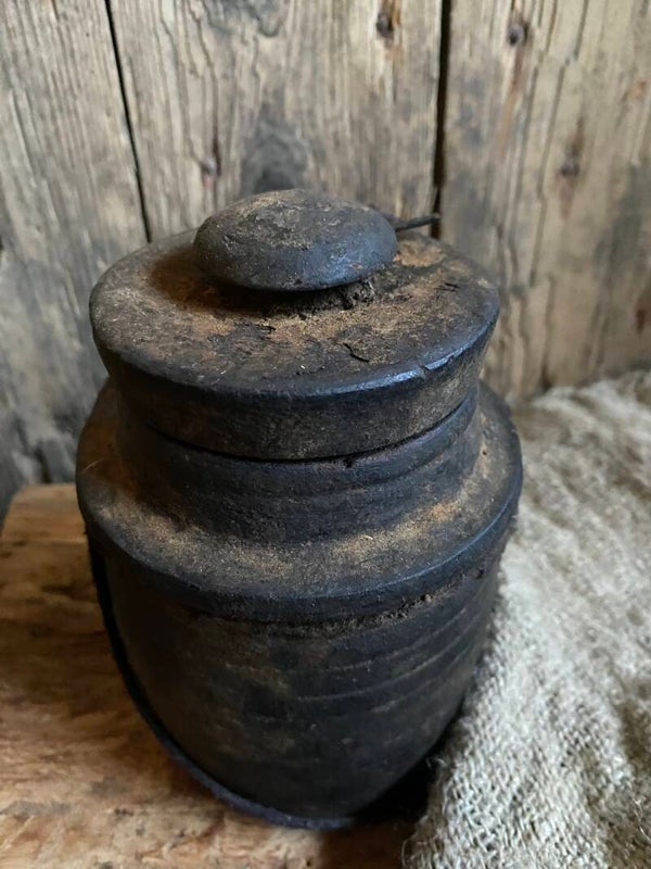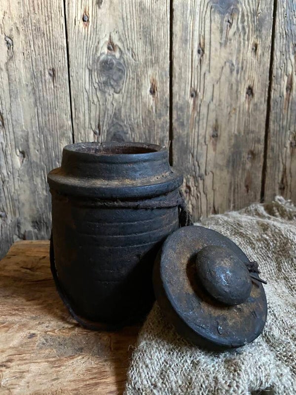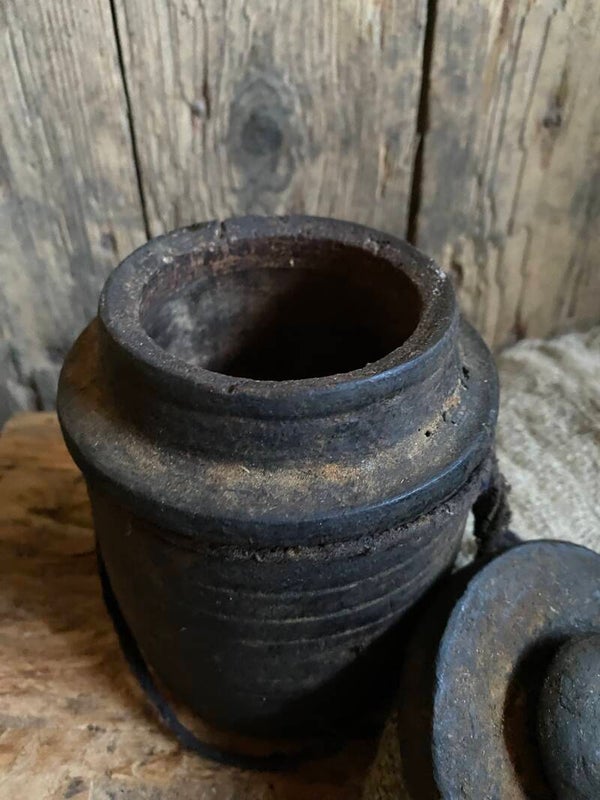 Oude Nepalese rond potje met deksel nr 9