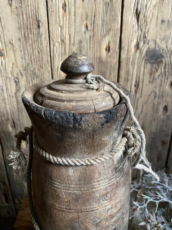 Oude Nepalese rond pot met deksel nr 12
