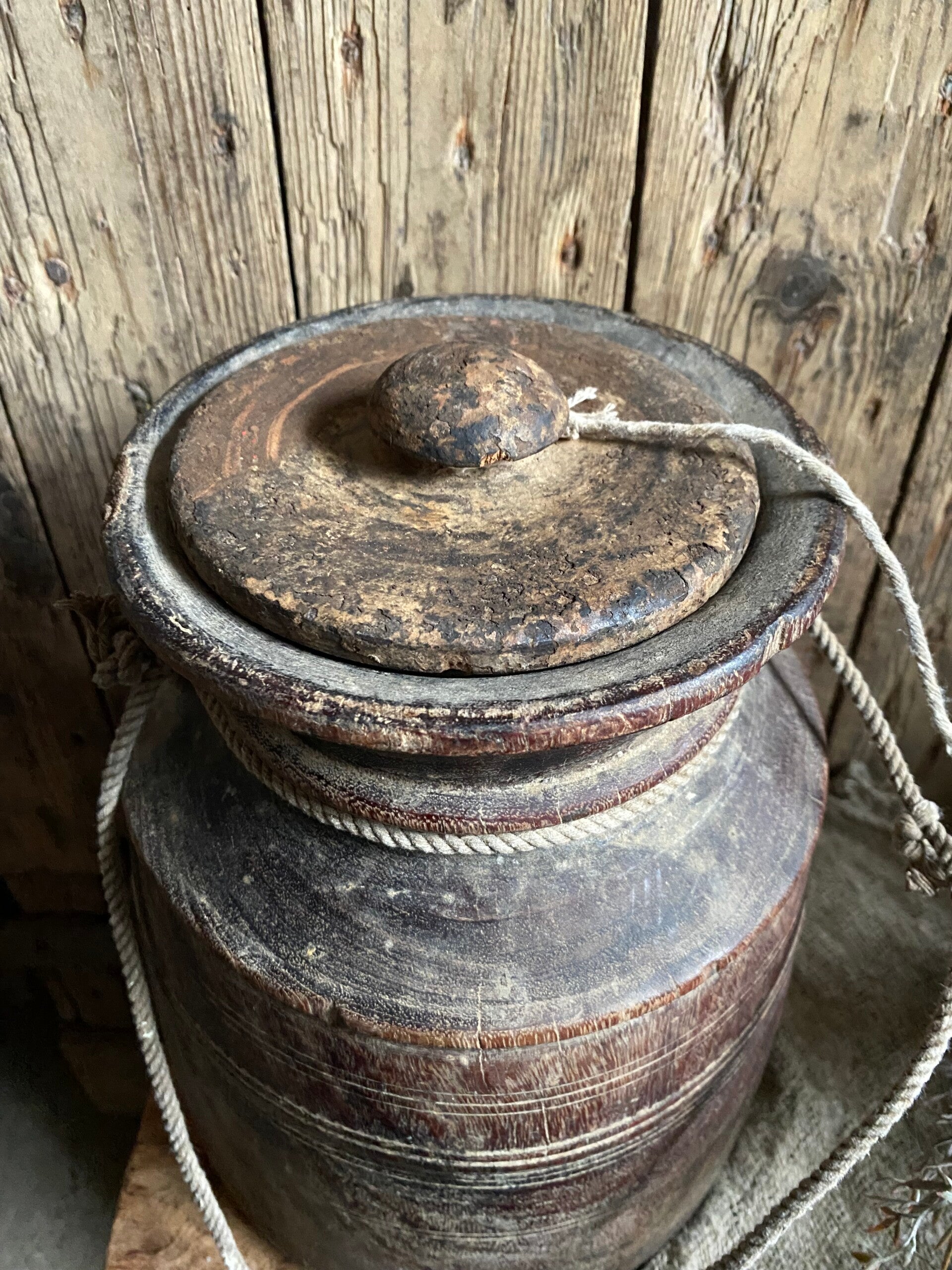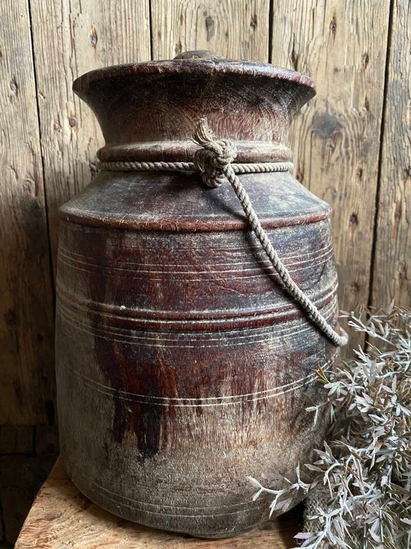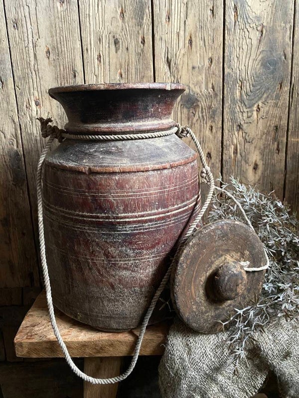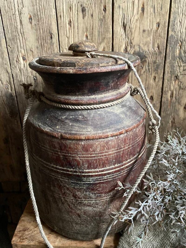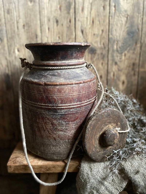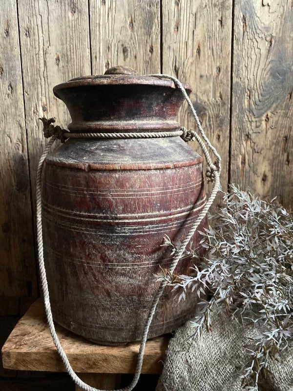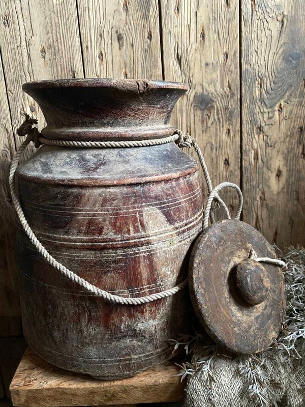 Oude Nepalese rond pot met deksel nr 16