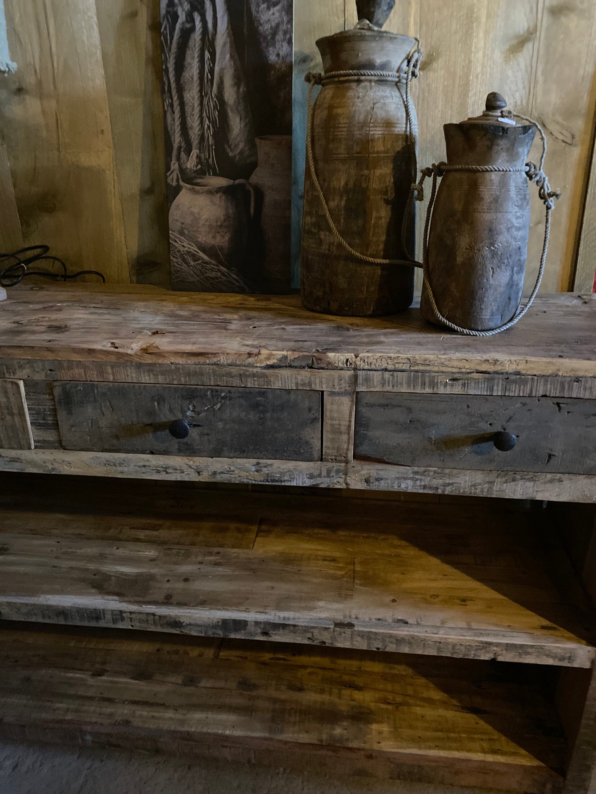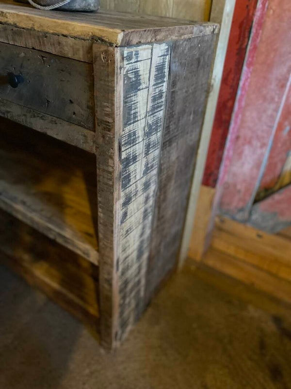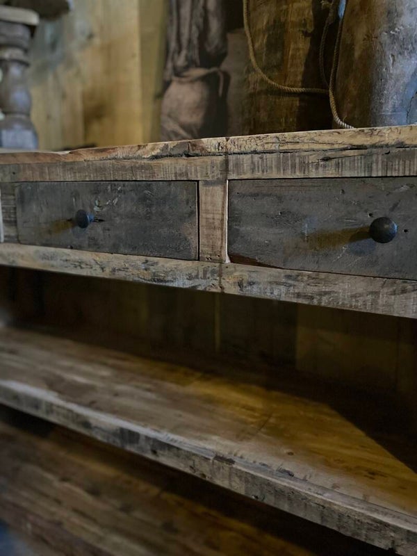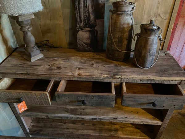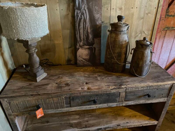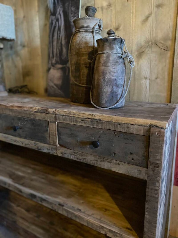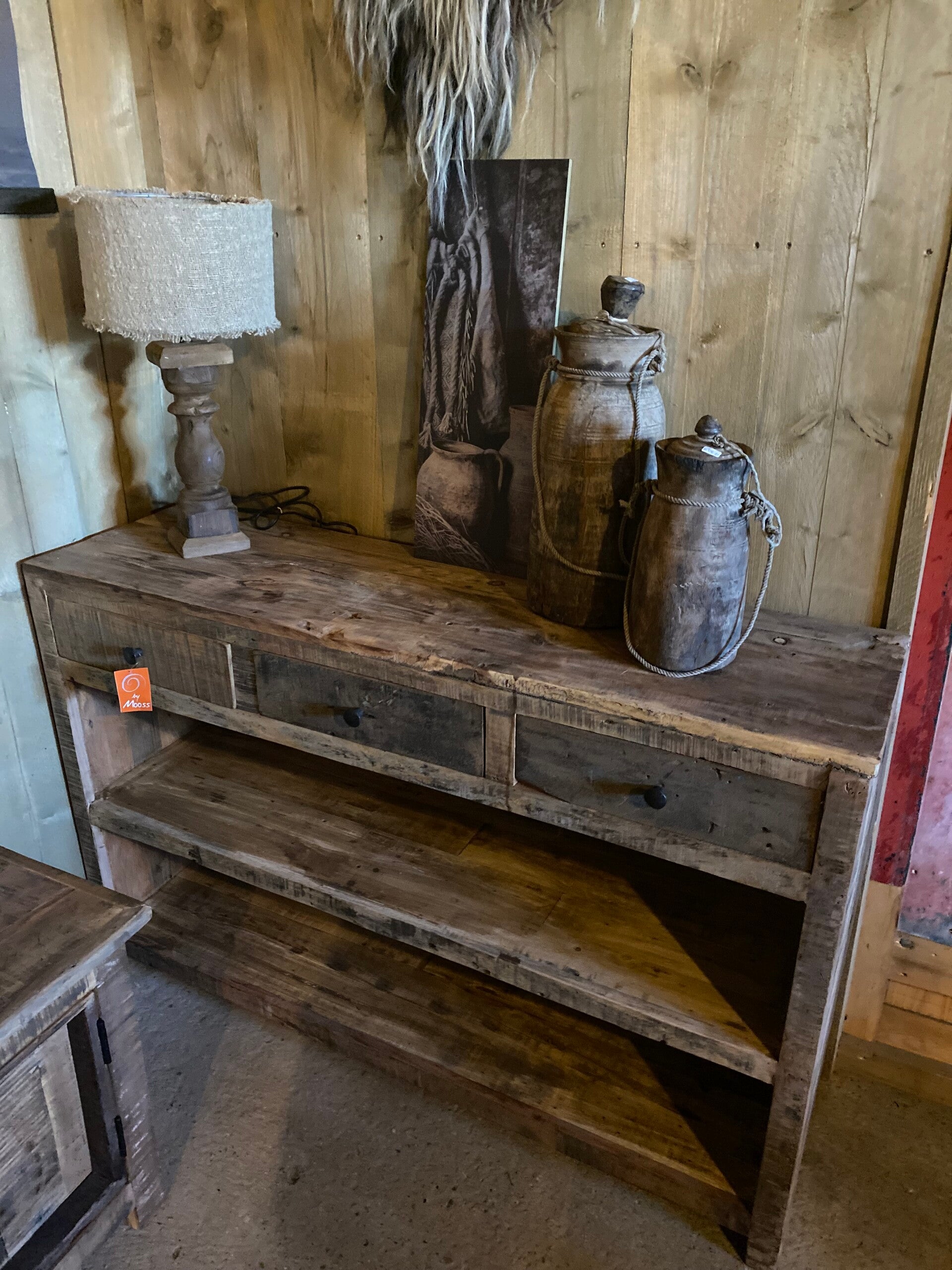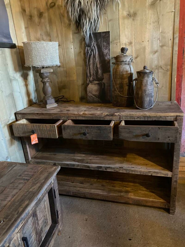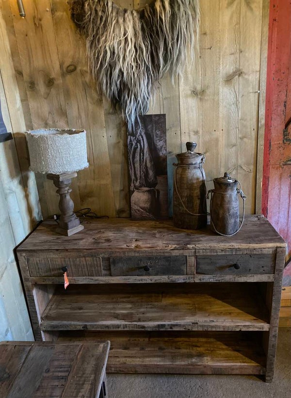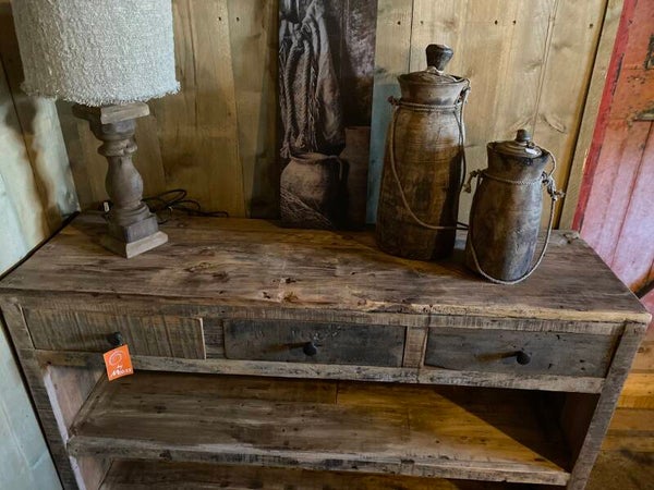 Gemaakt van oud hout, geen strakke kast maar geeft het interieur wel een stoer en landelijk uitstraling