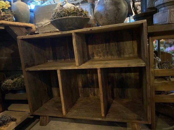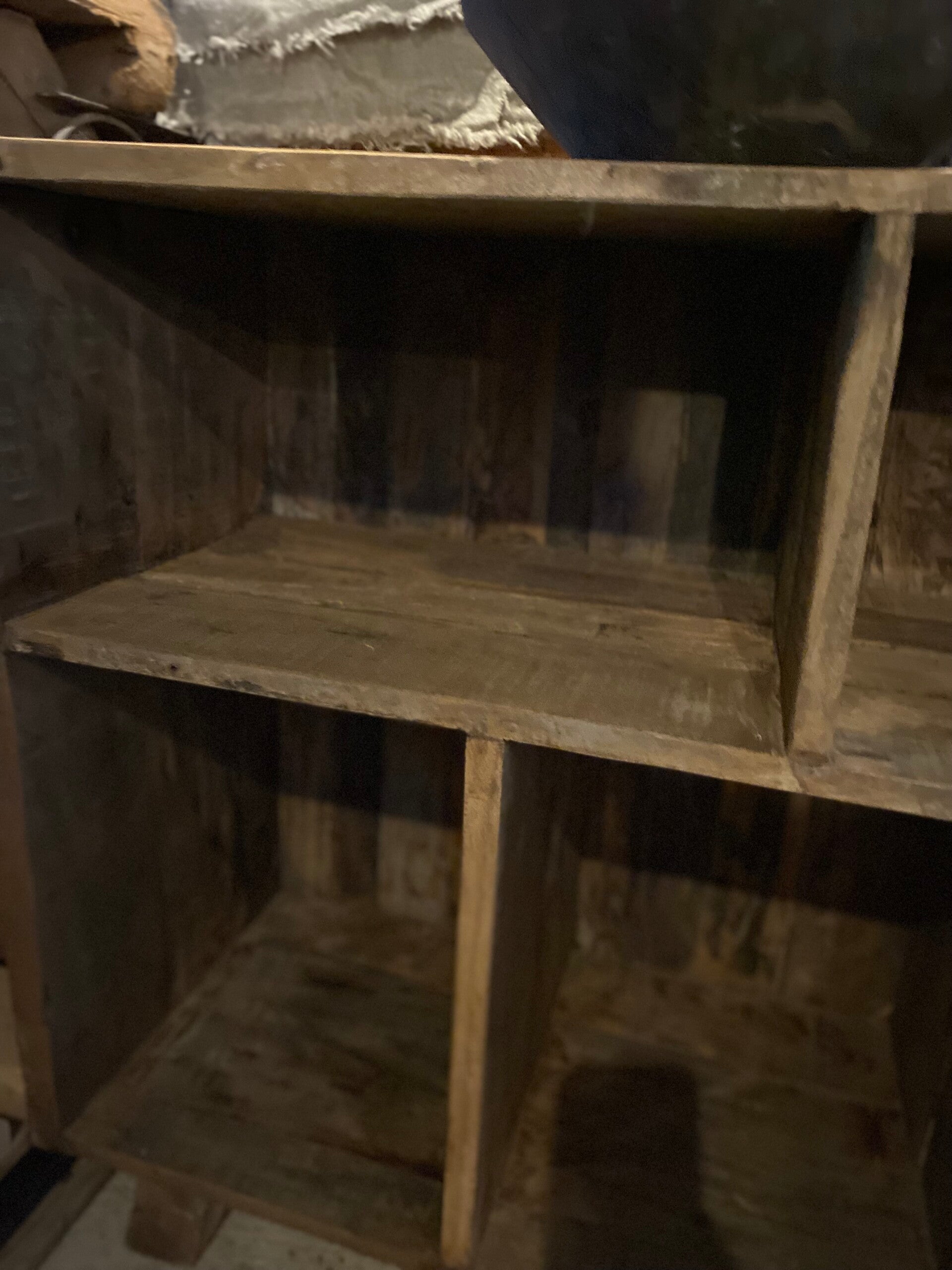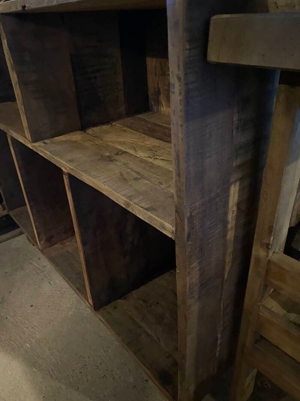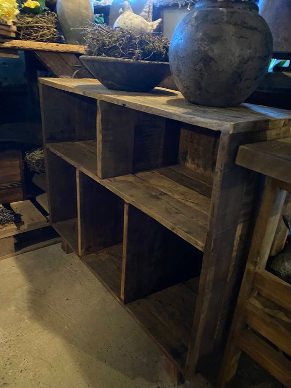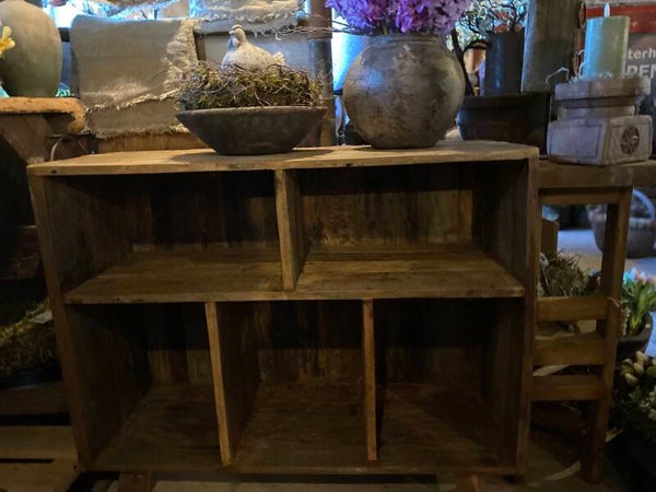 Gemaakt van oud hout, geen strakke kast maar geeft het interieur wel een stoer en landelijk uitstraling