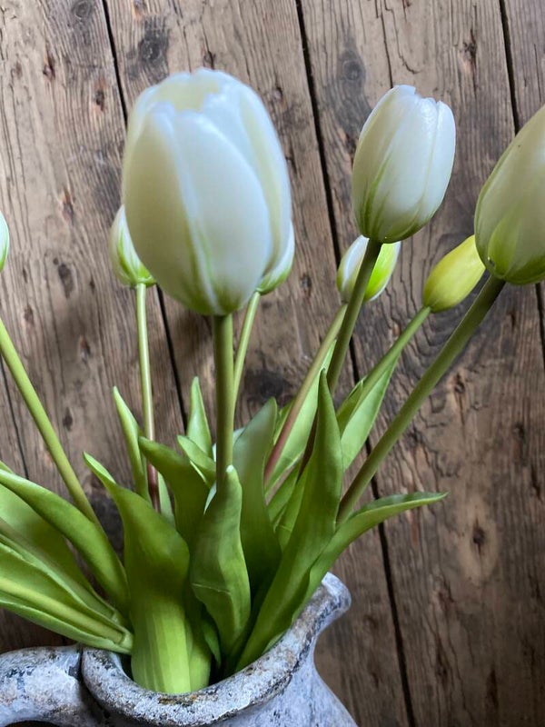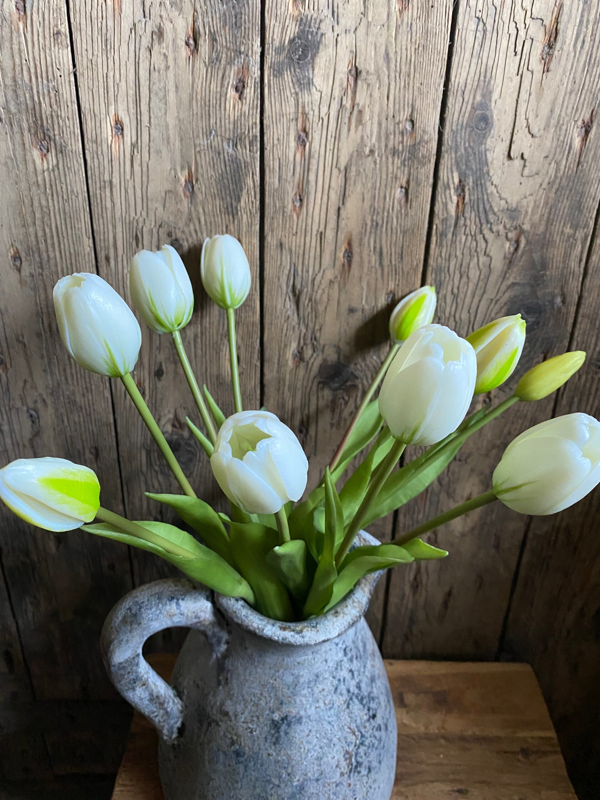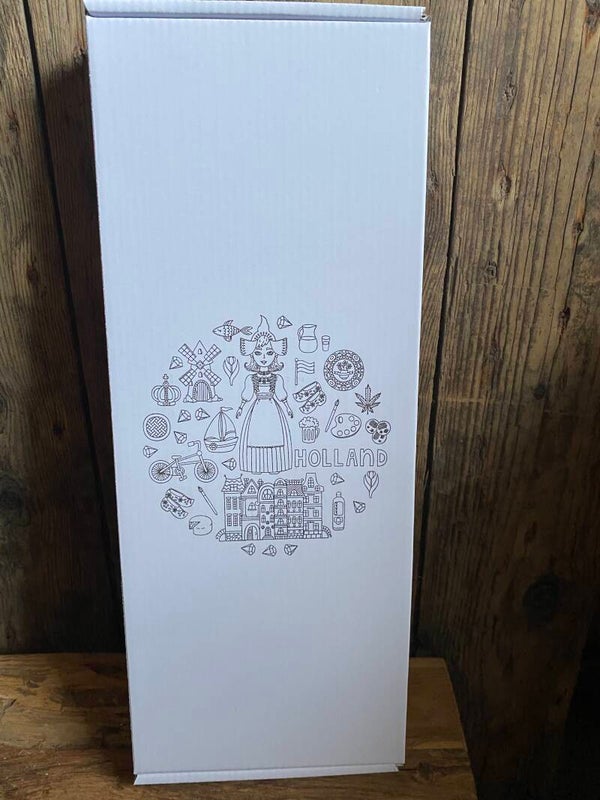 Bos van 12 witte tulpen in een Hollandse kadoverpakking