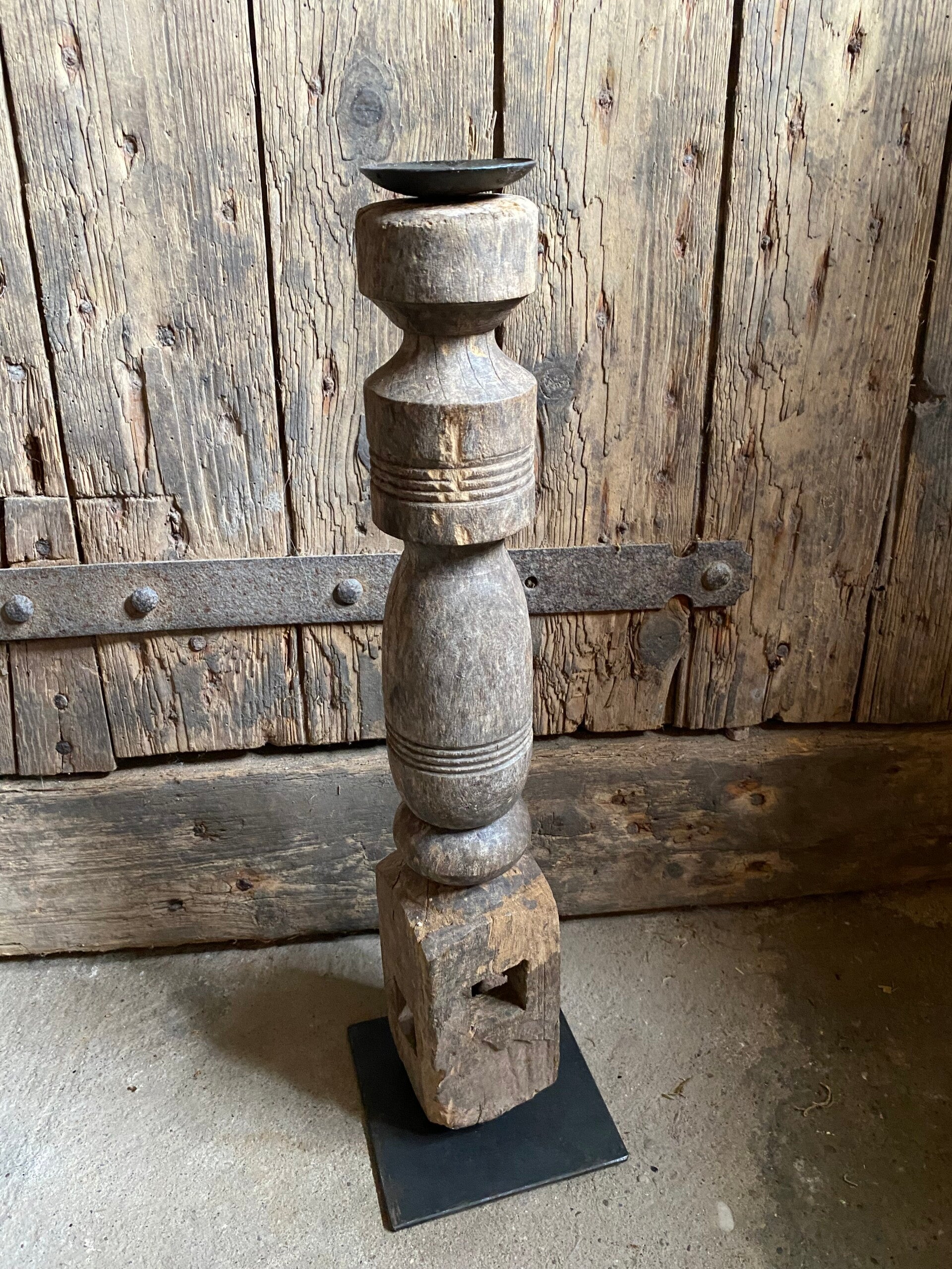 Oude houten kandelaar nr 1