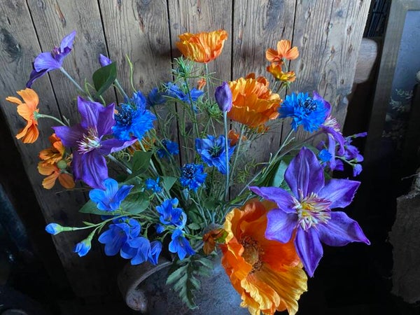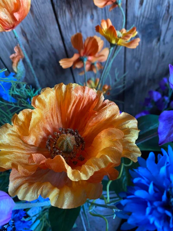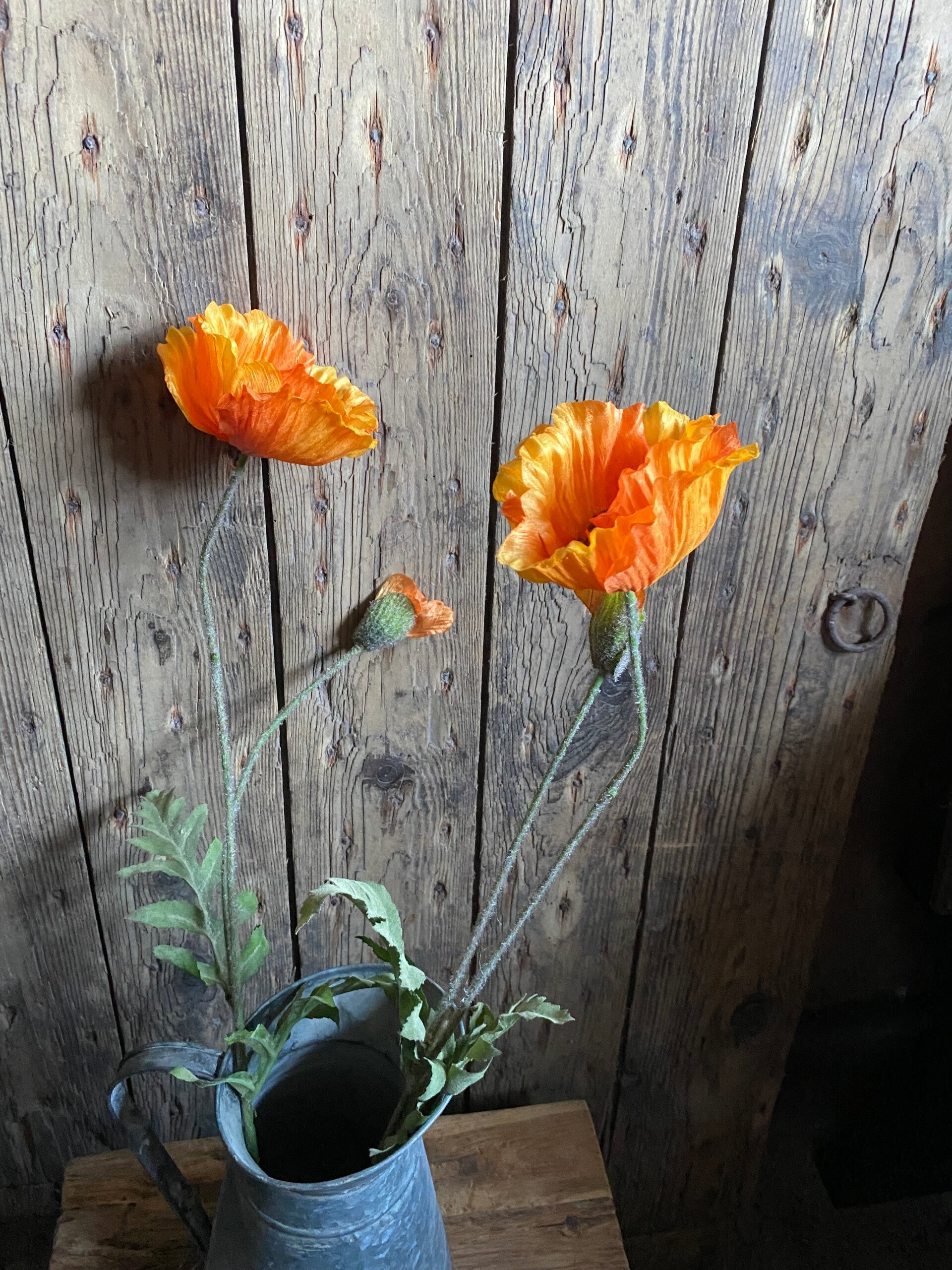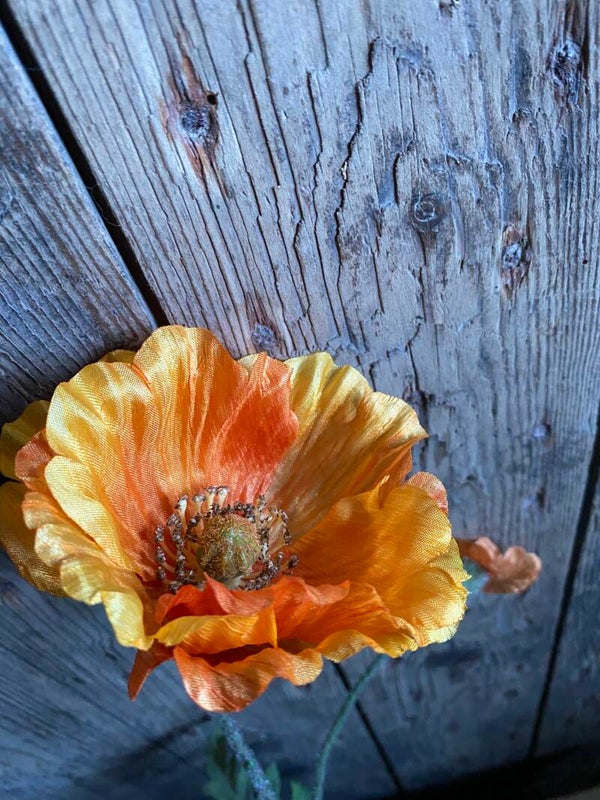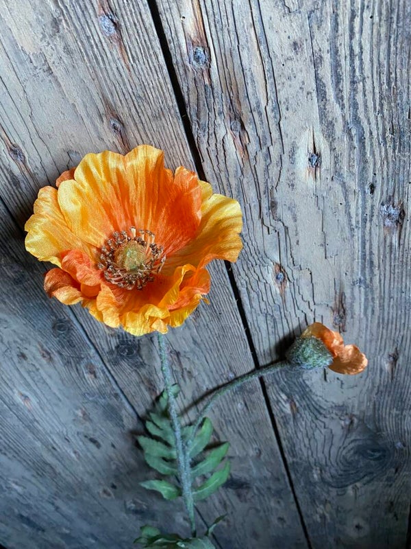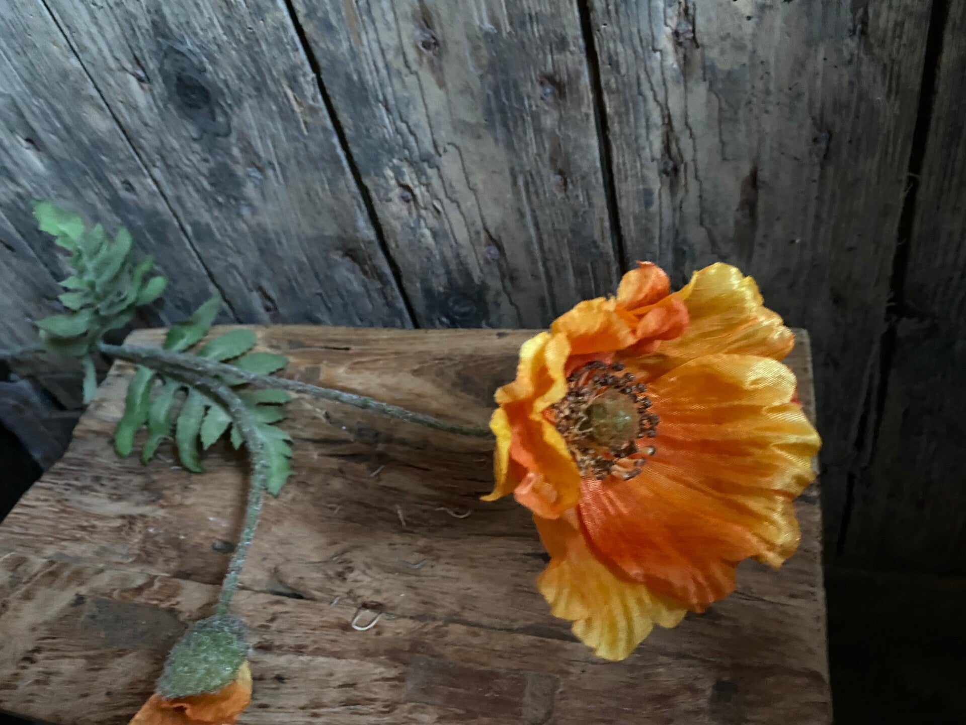 1 bloem (3 laags, Ø 12cm) & 1 knop, flocked, 2 blad.
