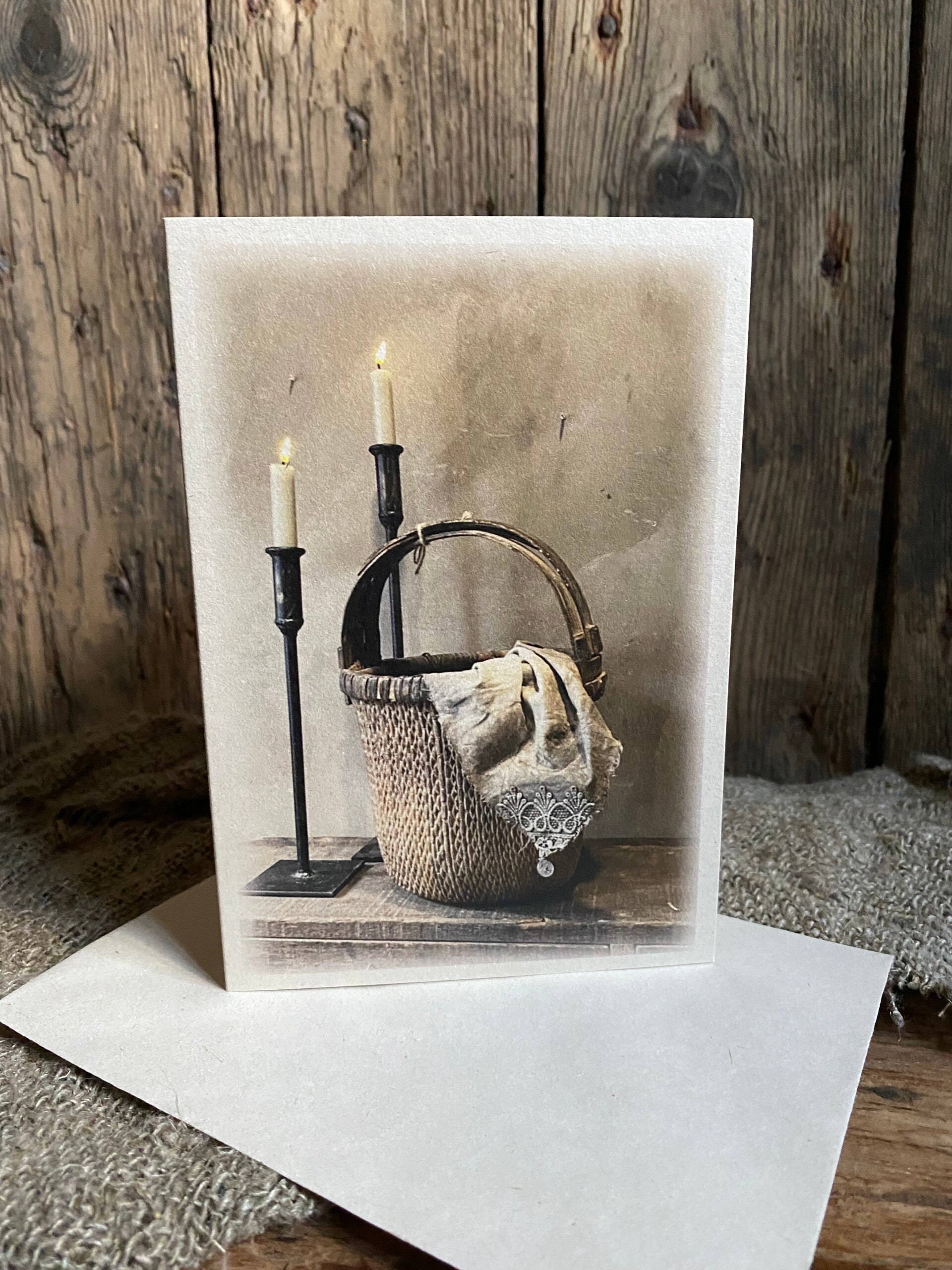 Kaart is 10,9 cm bij 15,9 cm inclusief beigekleurig envelop