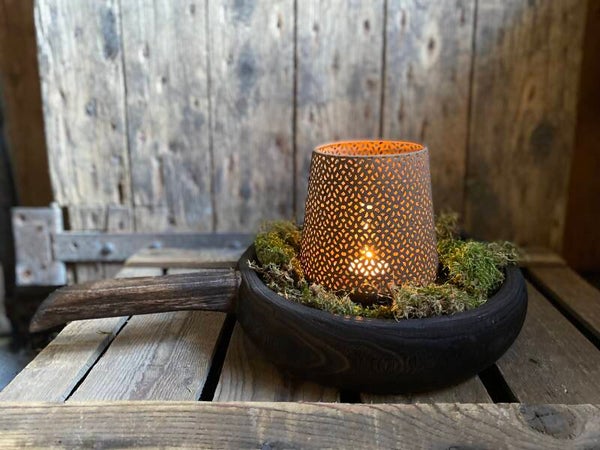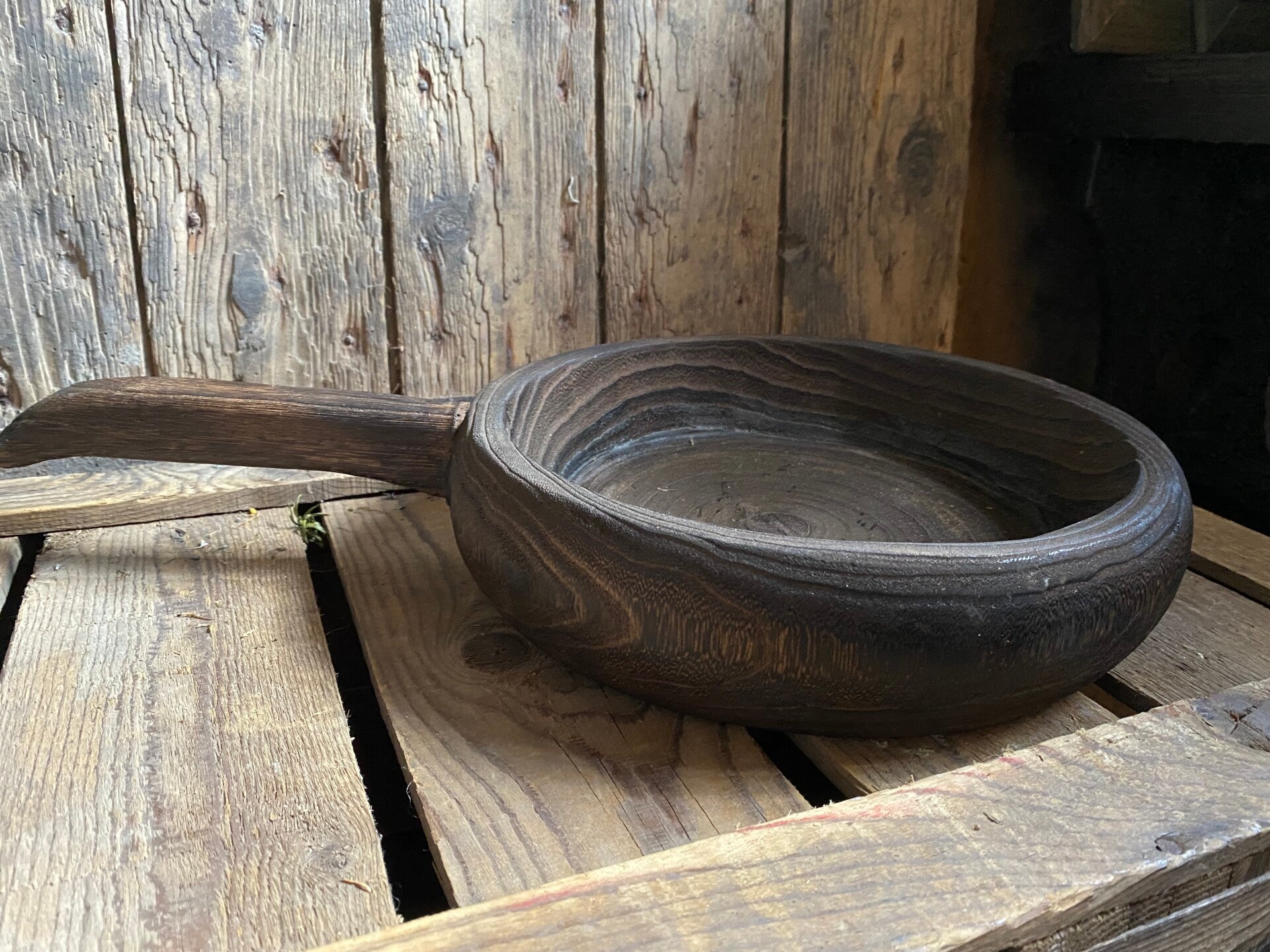 Donker bruin houten schaal met handvat