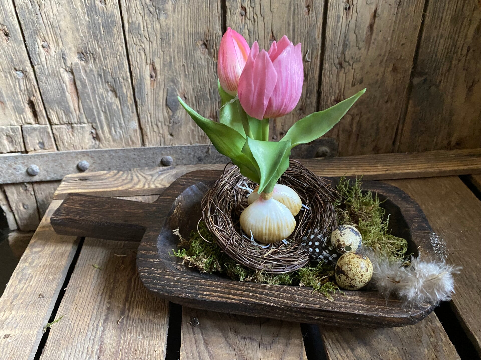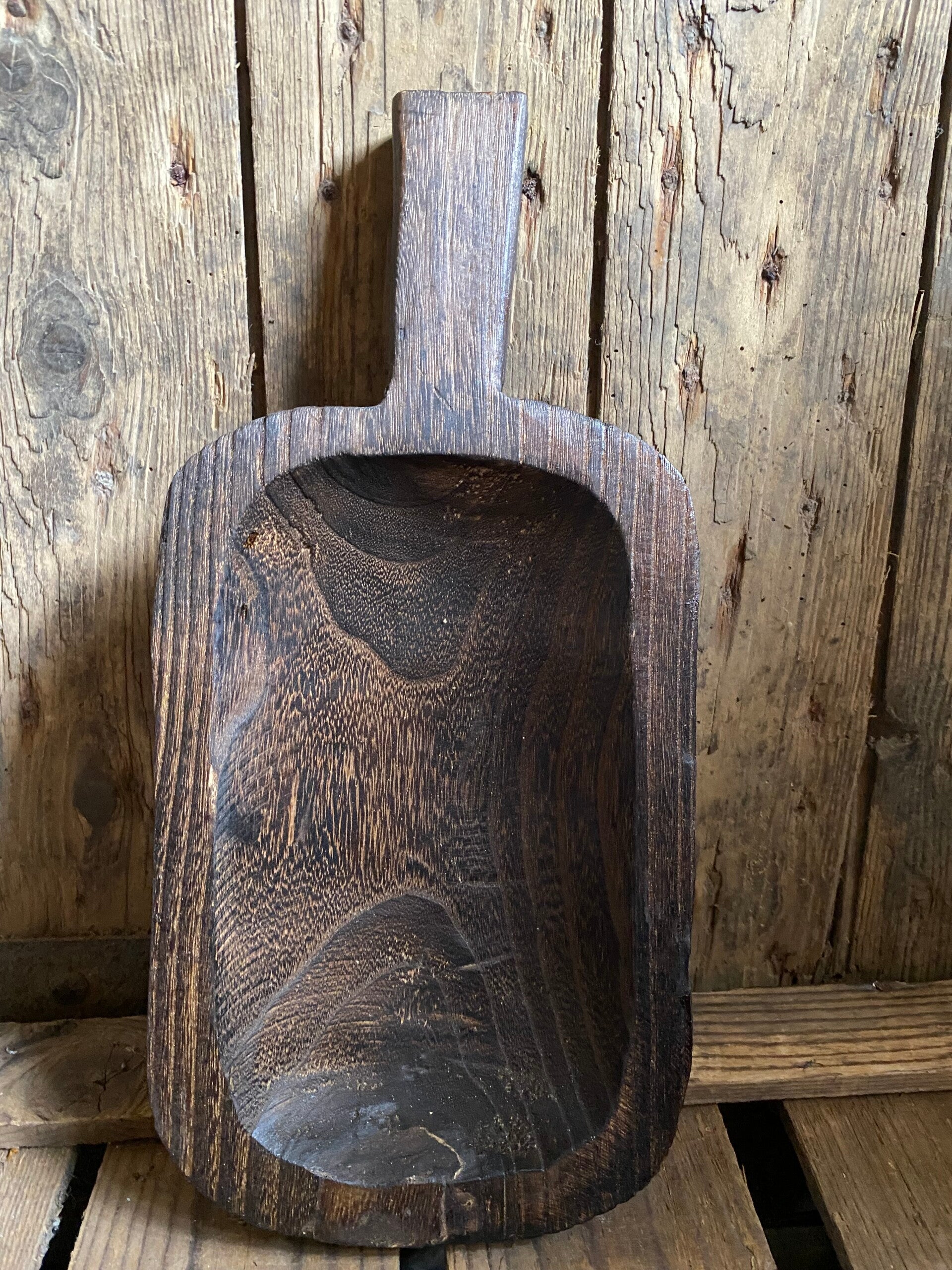 Donker bruin houten trogje/schep