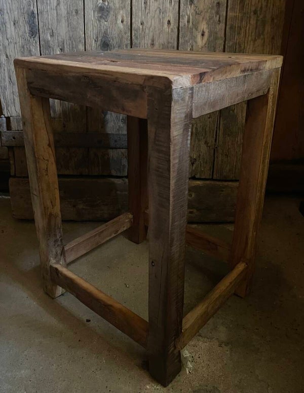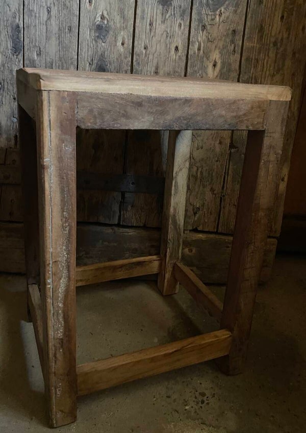 Gemaakt van oud hout, geen strakke krukje maar geeft het interieur wel een stoer en landelijk uitstraling