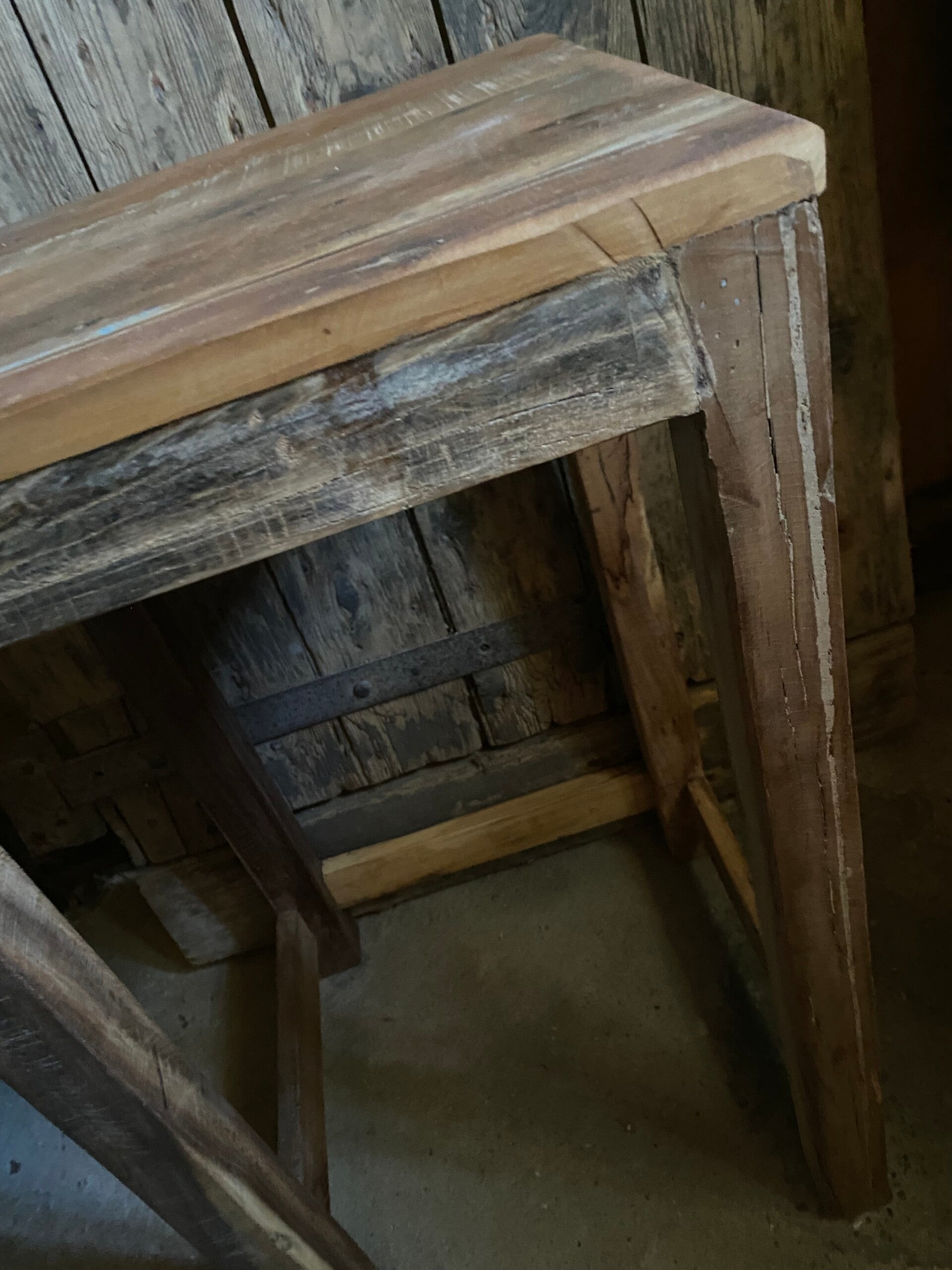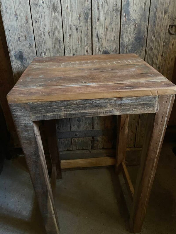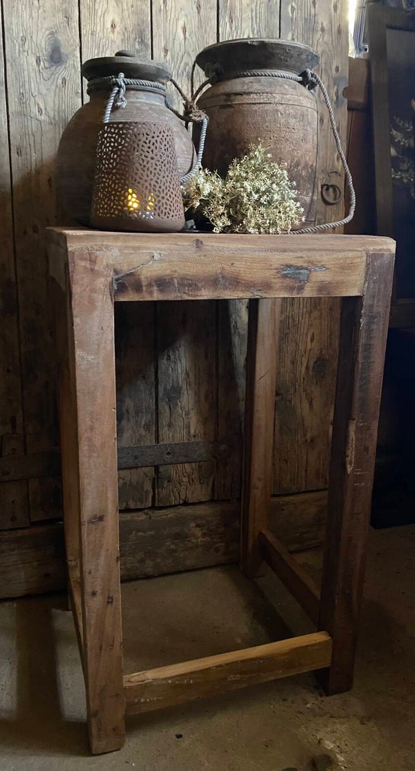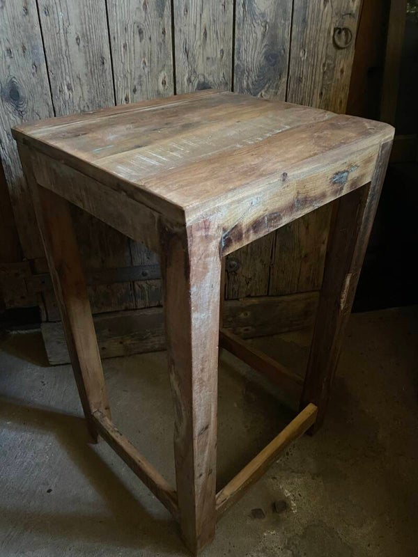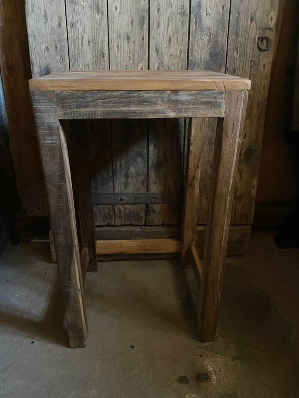 Gemaakt van oud hout, geen strakke krukje maar geeft het interieur wel een stoer en landelijk uitstraling