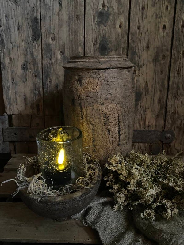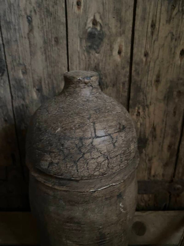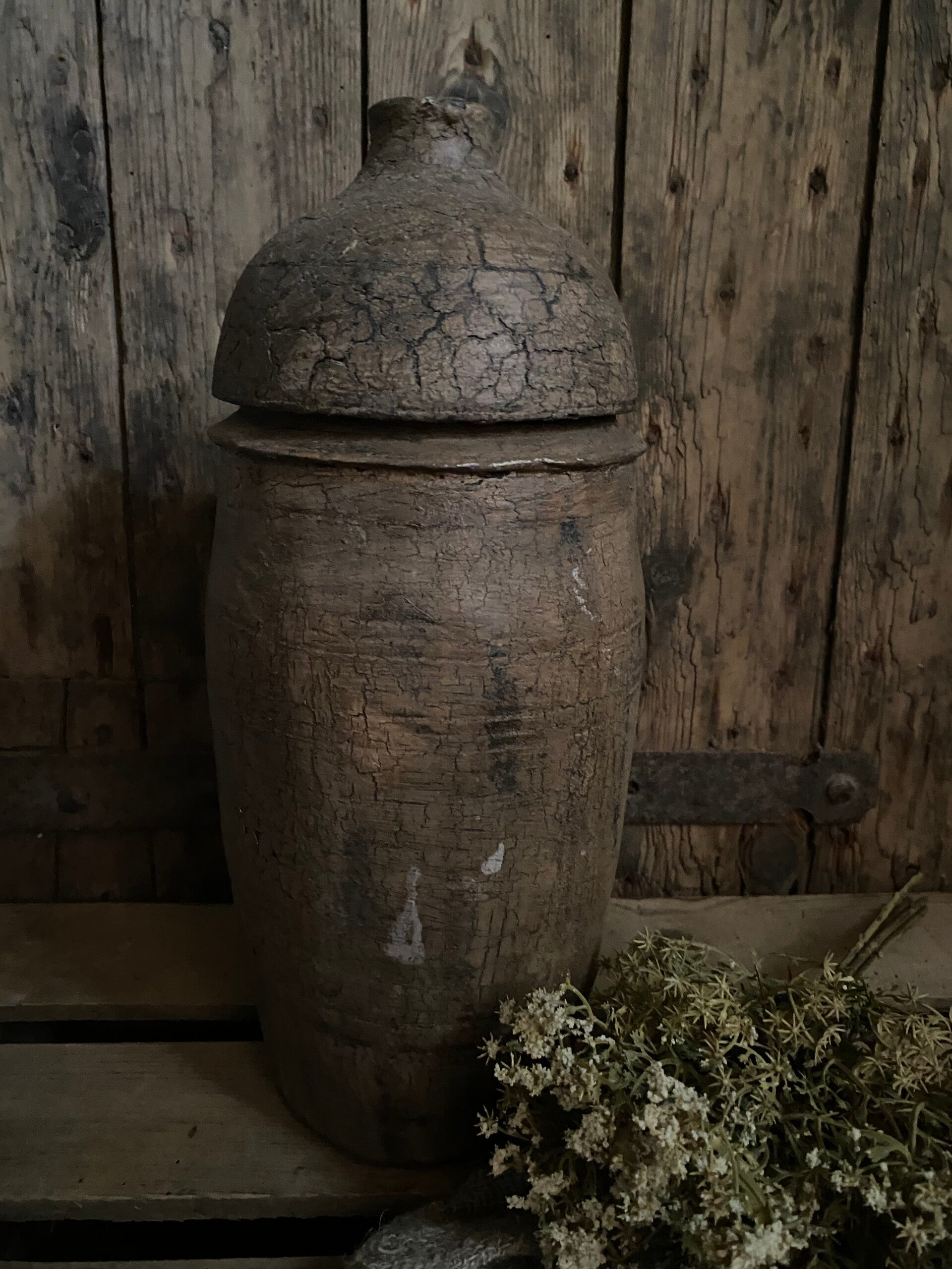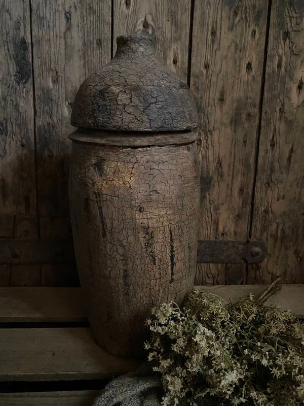 Deze prachtige craquele pot met deksel is van hout. Uniek en authentiek