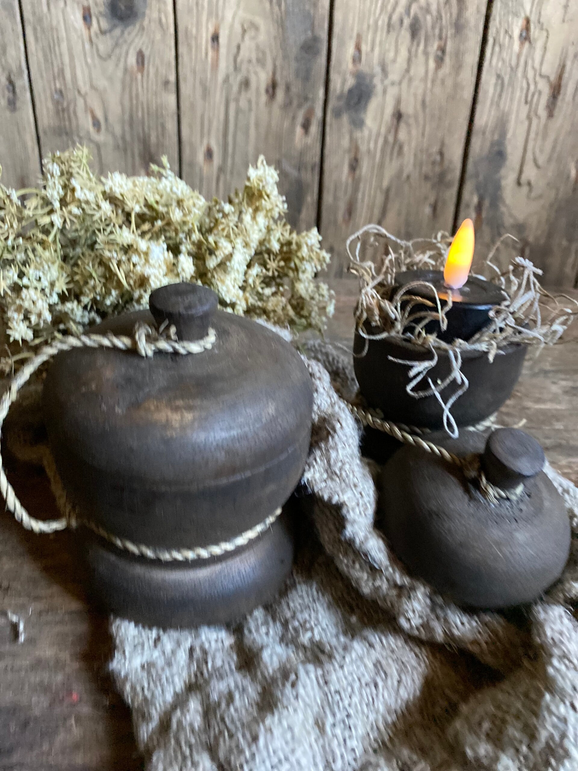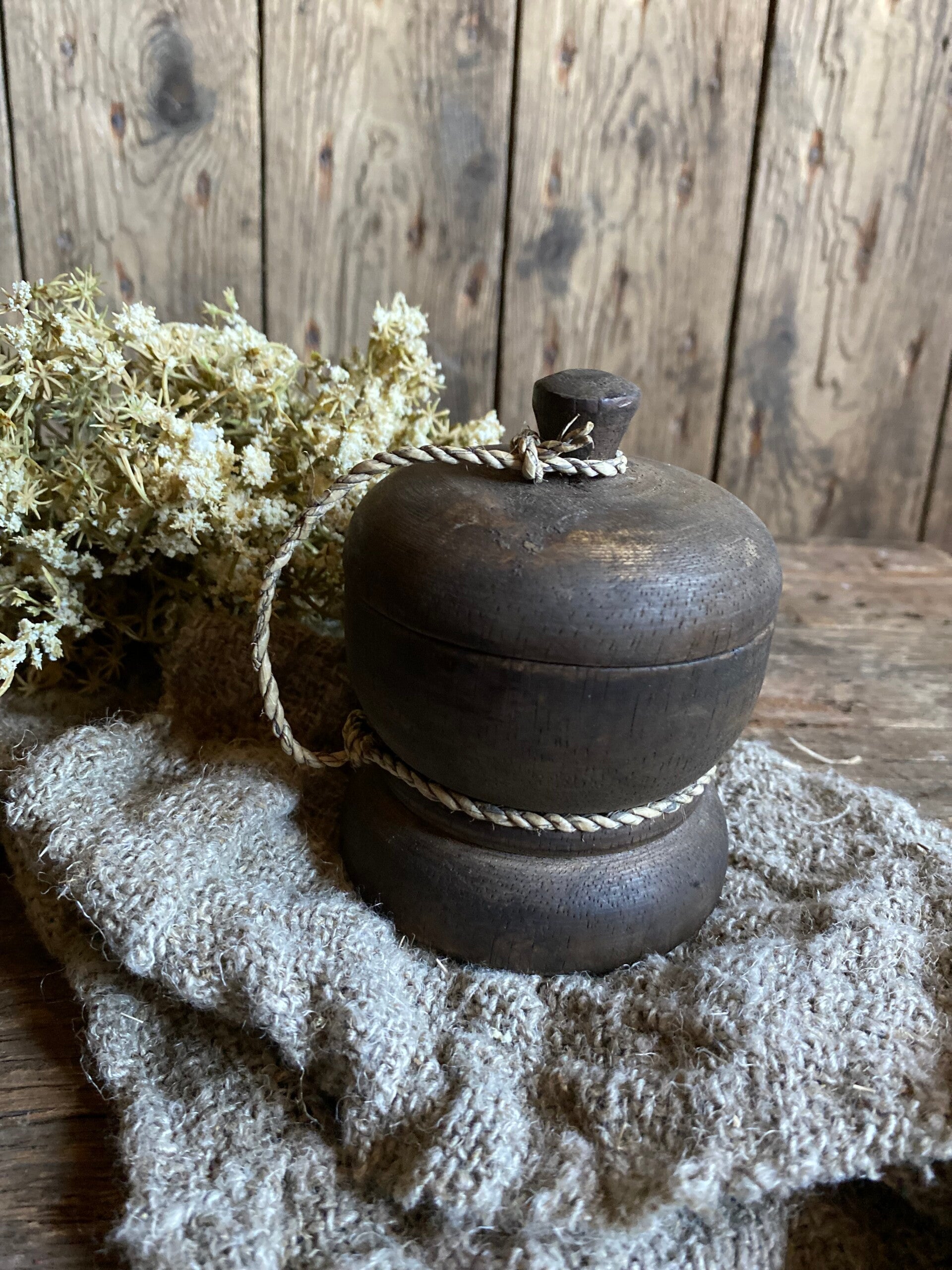 Groot donker houten potje met deksel