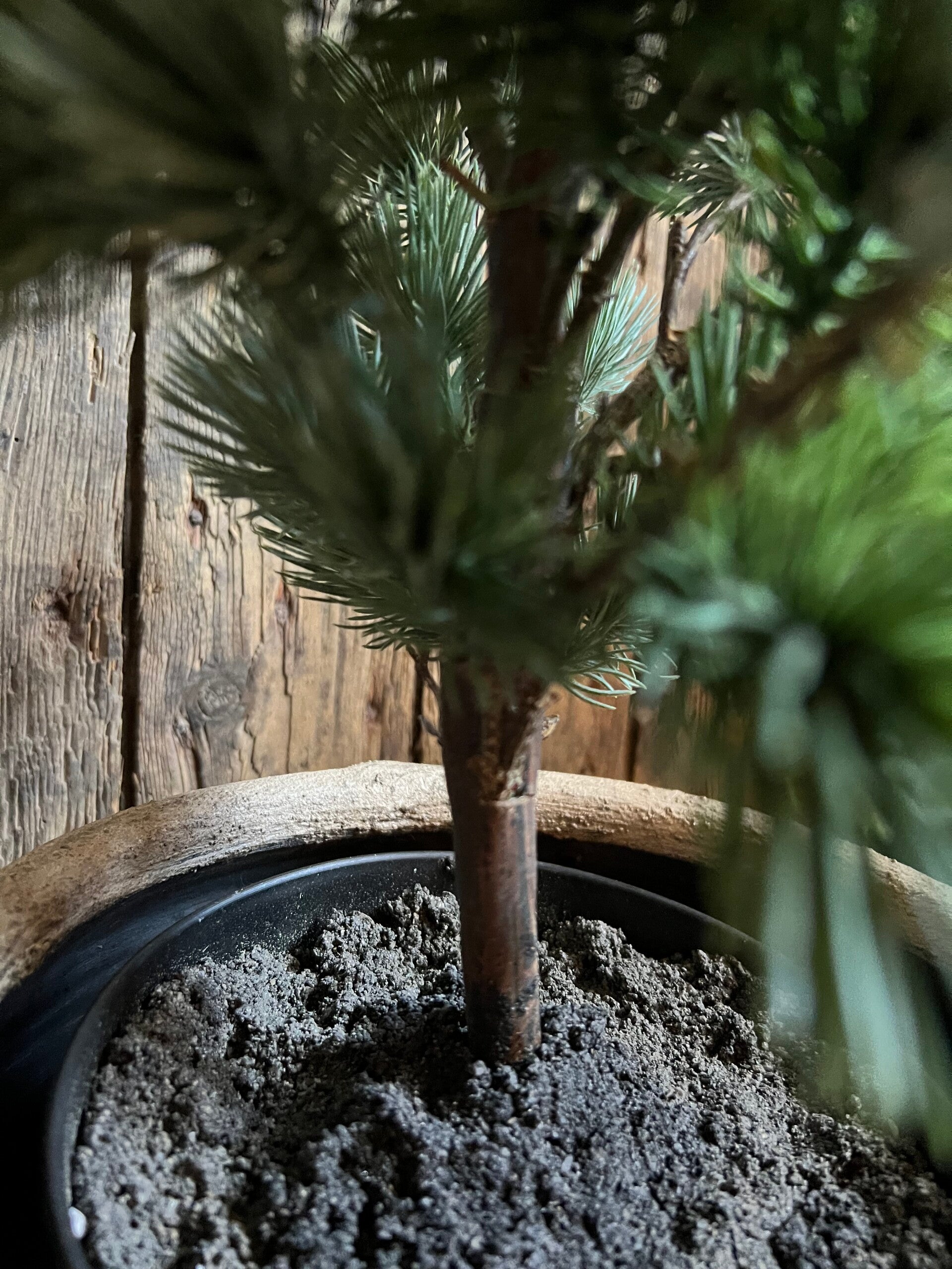 boom staat in een verzwaarde pot