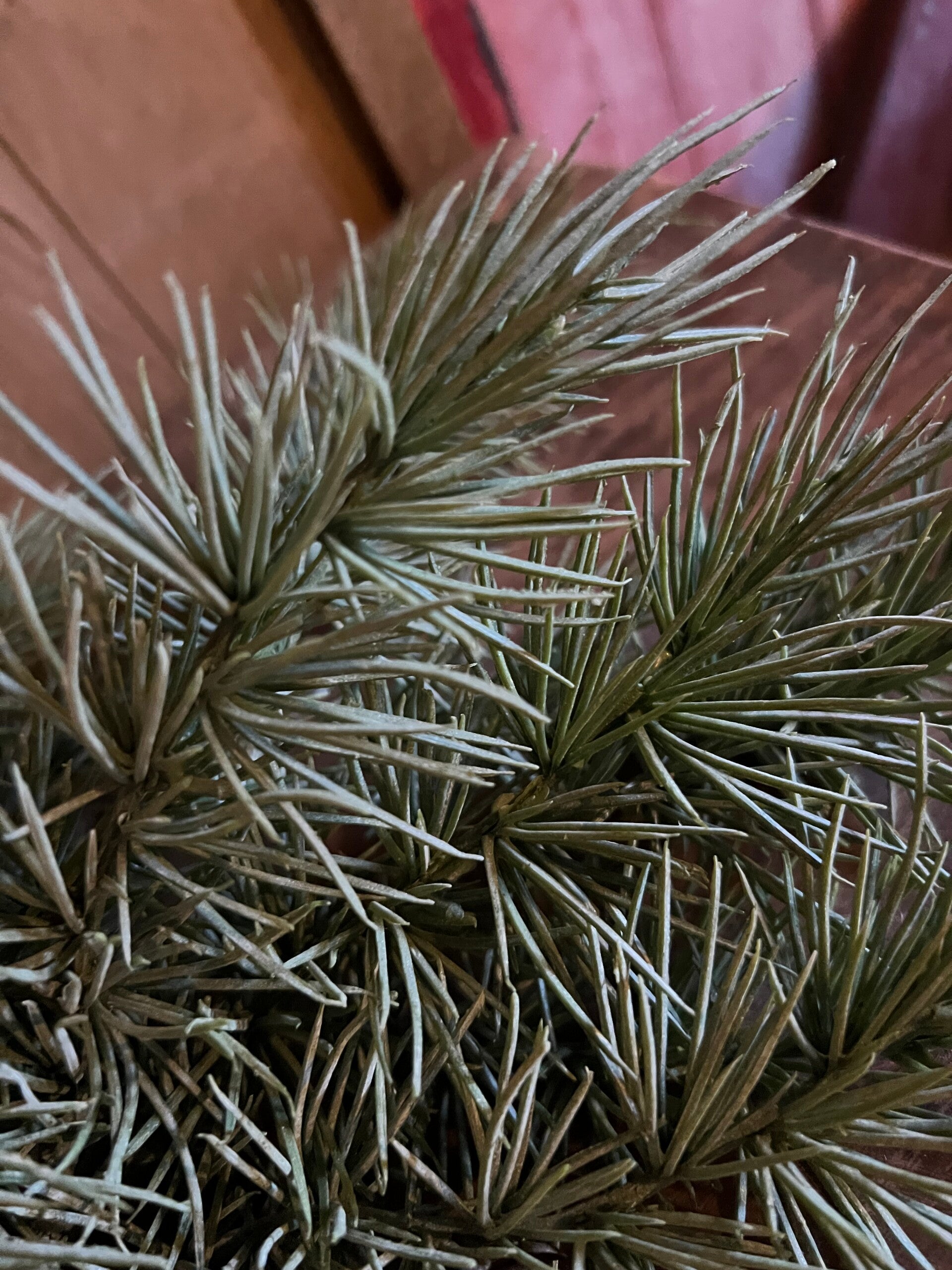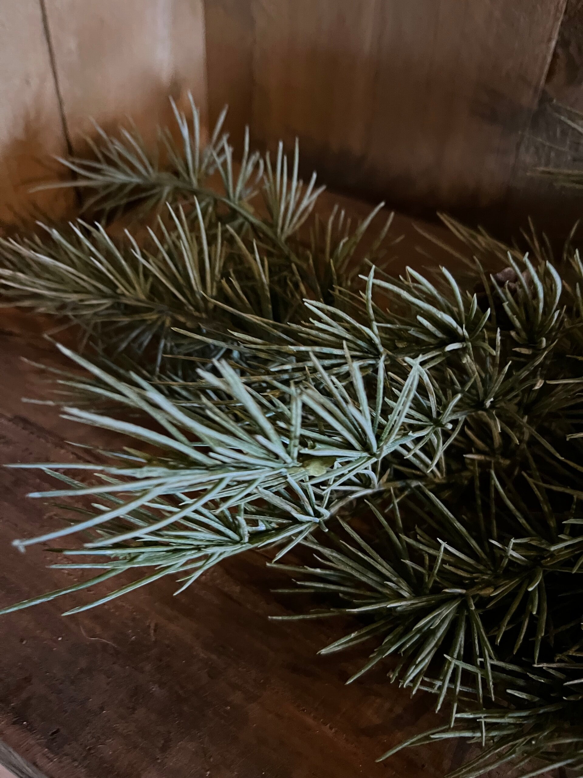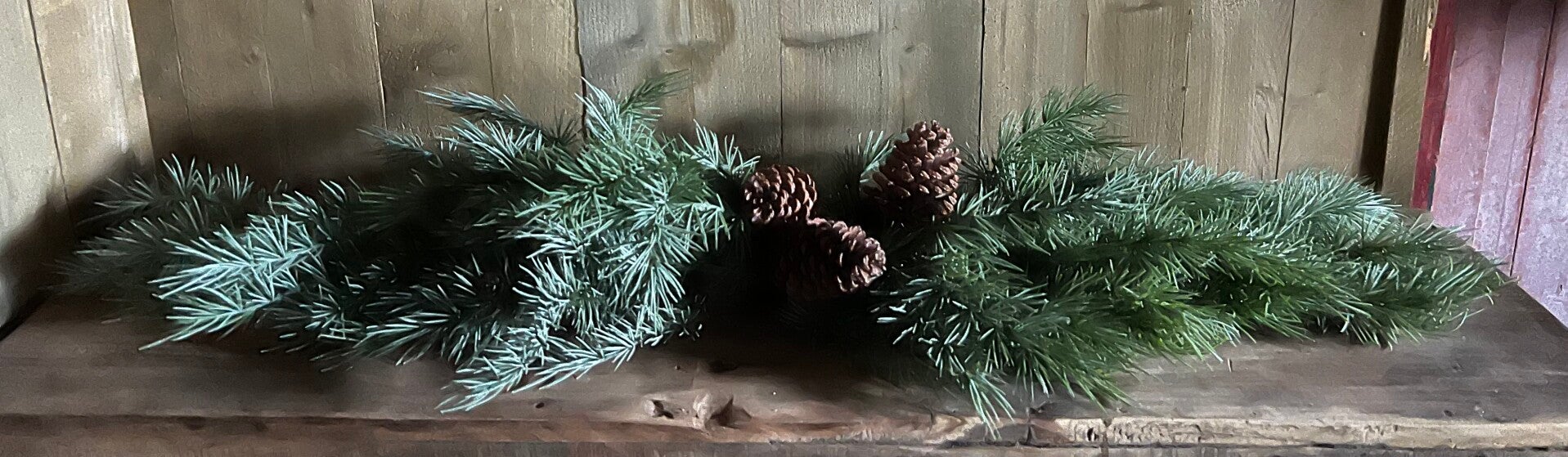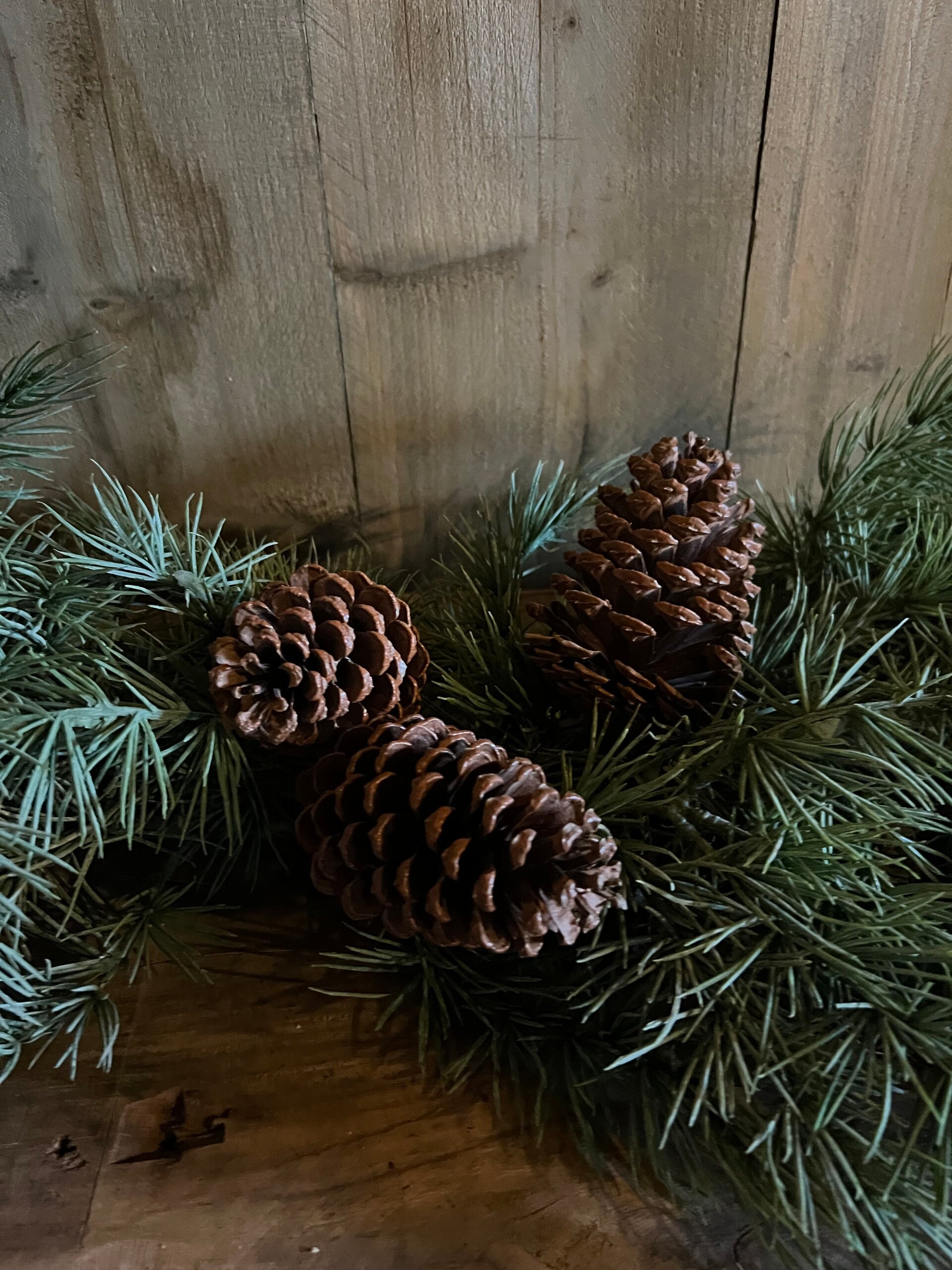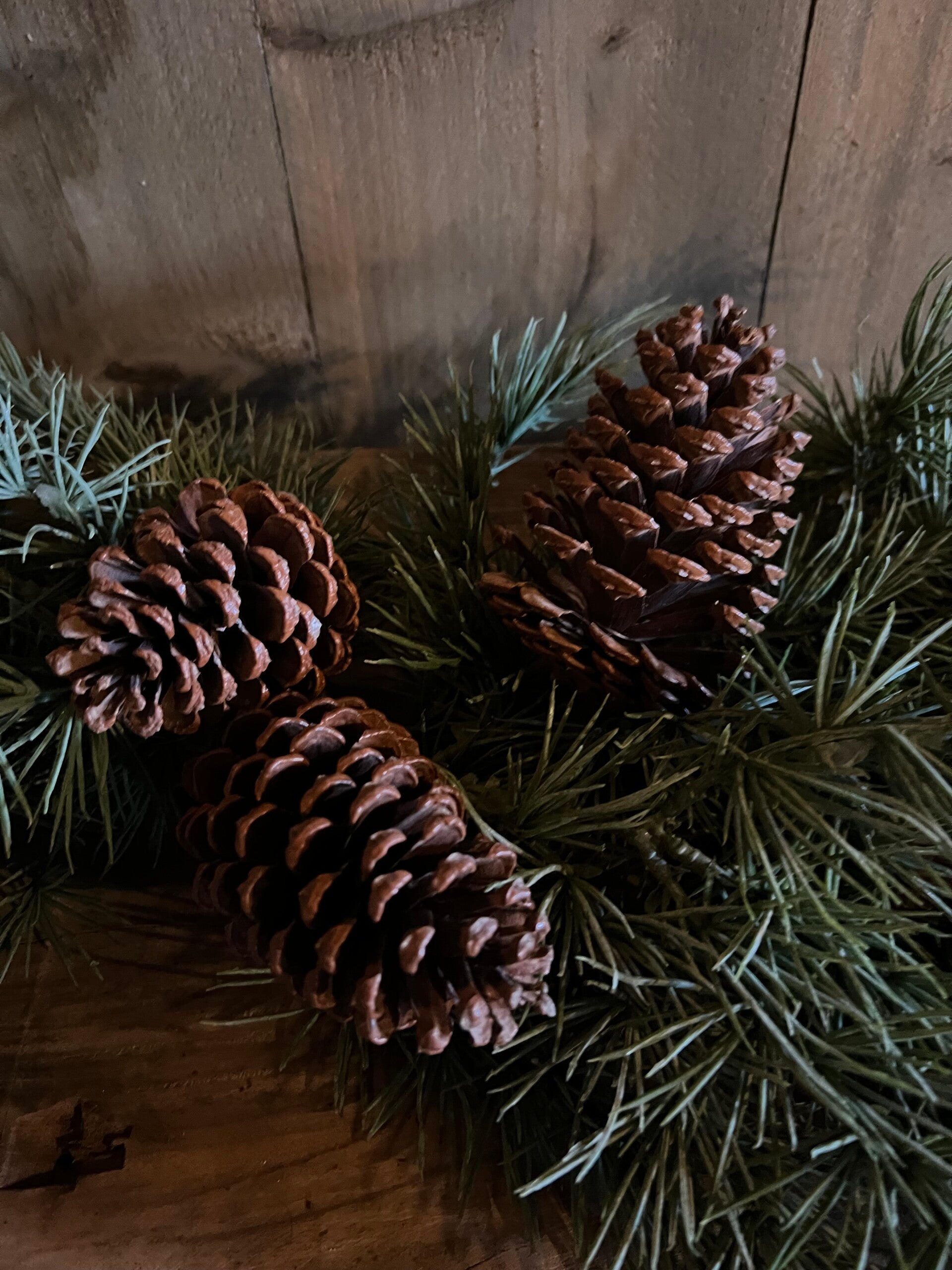 Prachtig lange (tafel/schouw/kast )toef kunst met echte denneappels erop