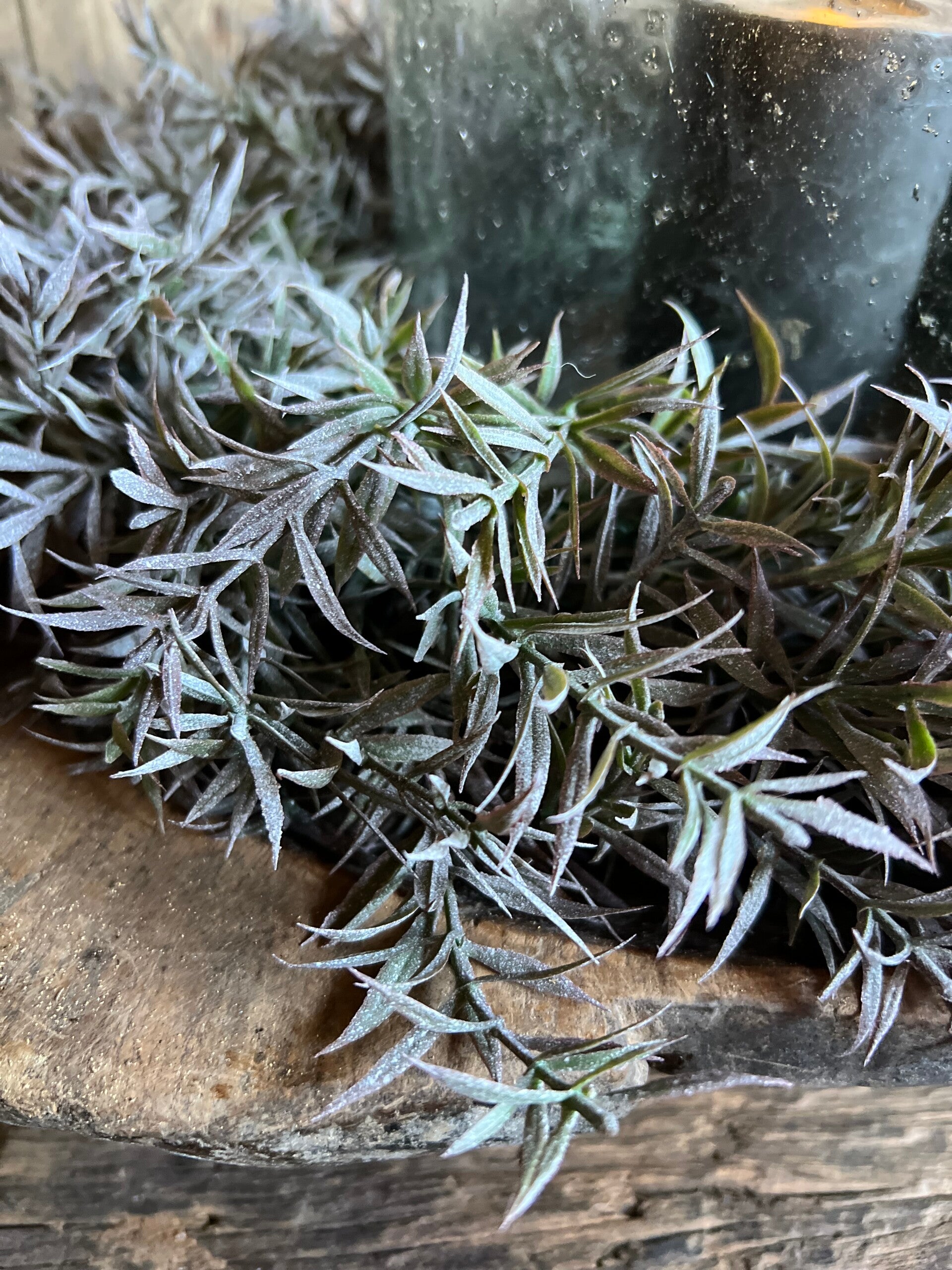 Krans is opgebonden op een donkerbruine sisal krans