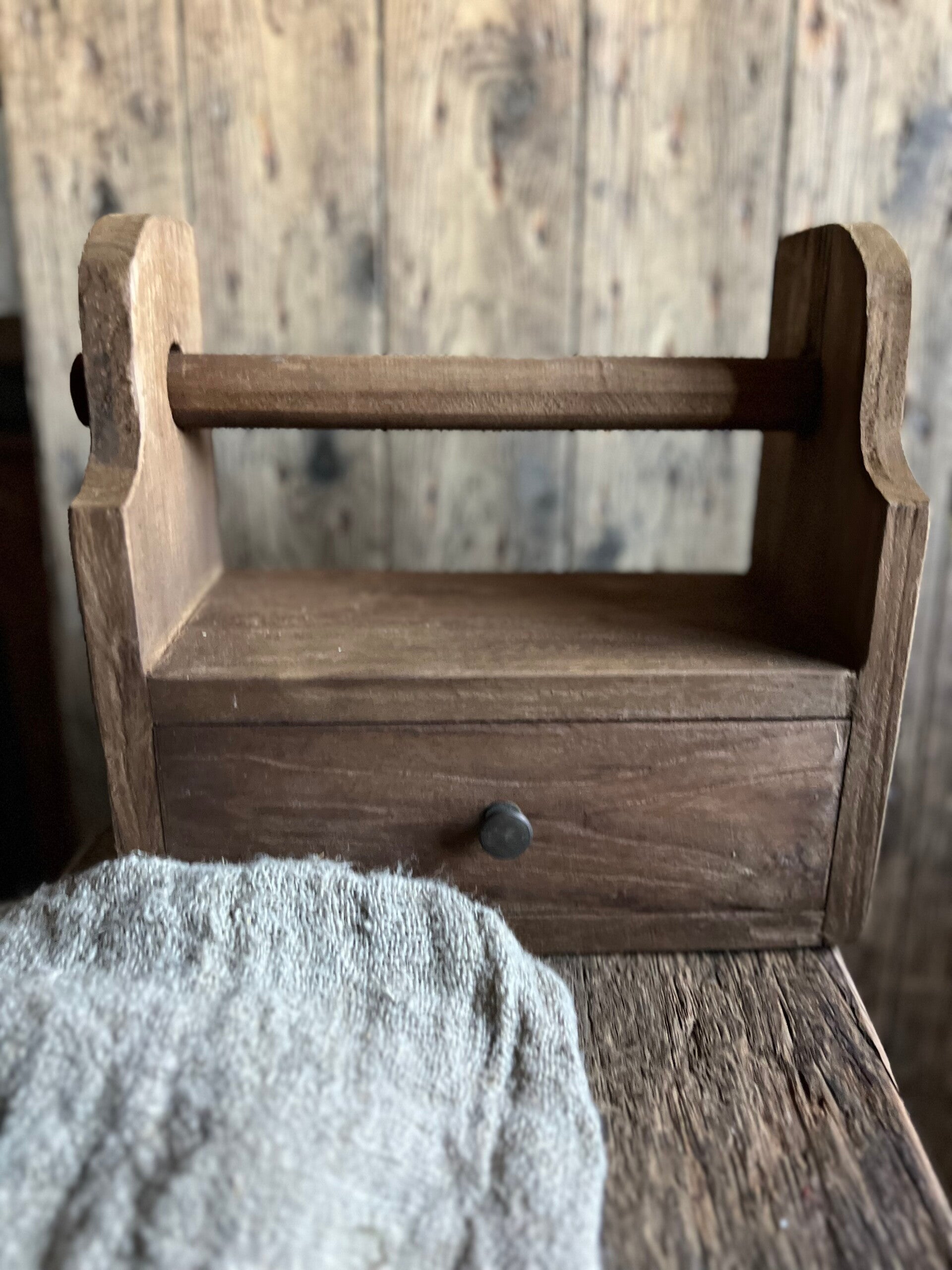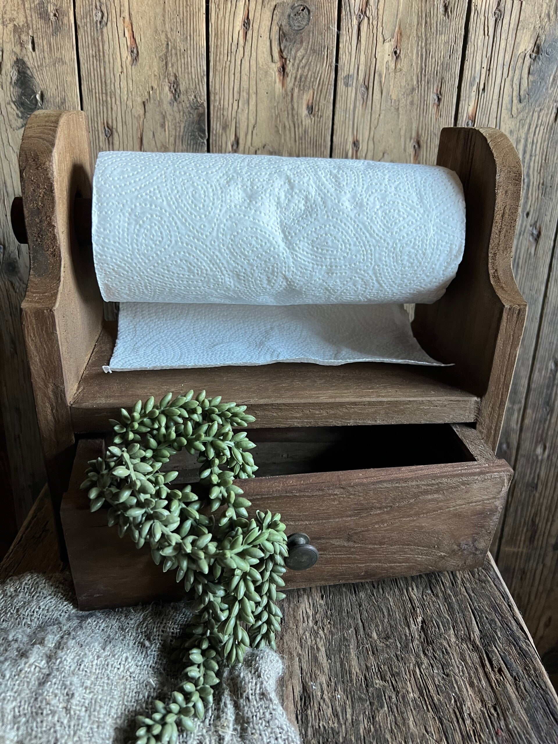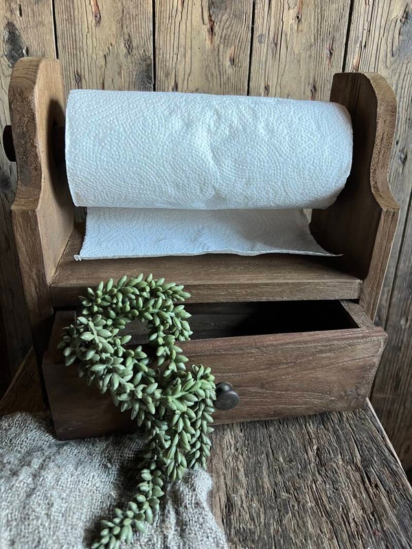 Donker Houten keukenrolhouder met laadje