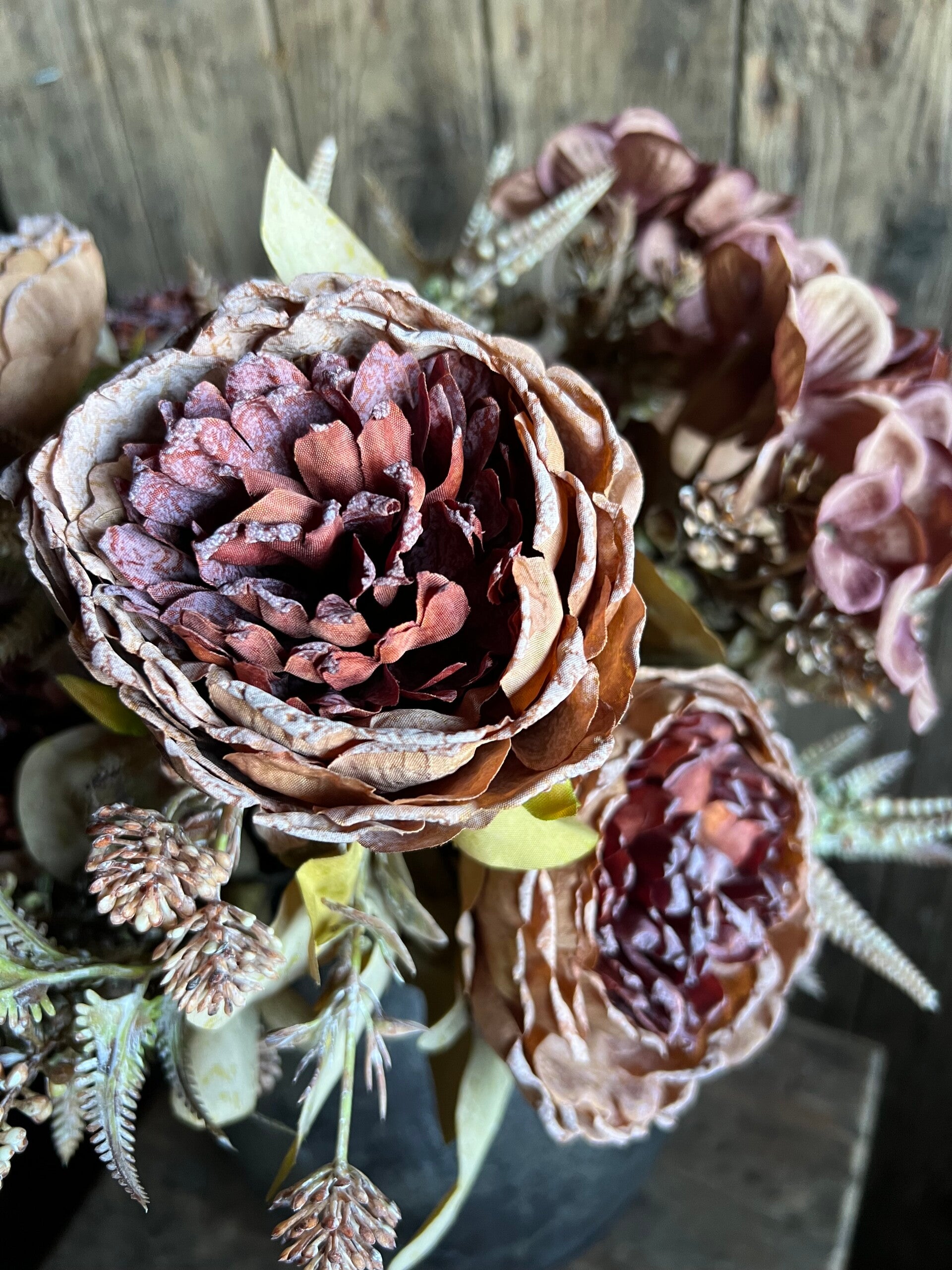 Rijk gevuld boeket met rozen, hortensia en diverse opvulstelen