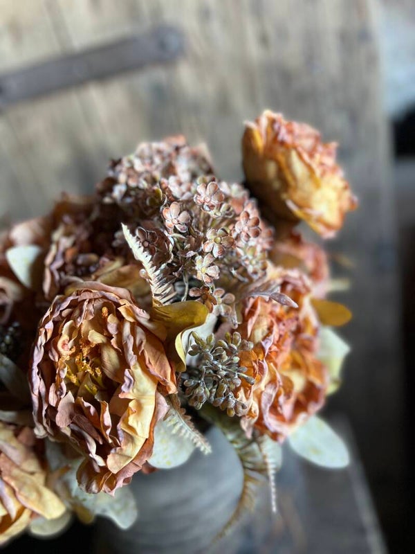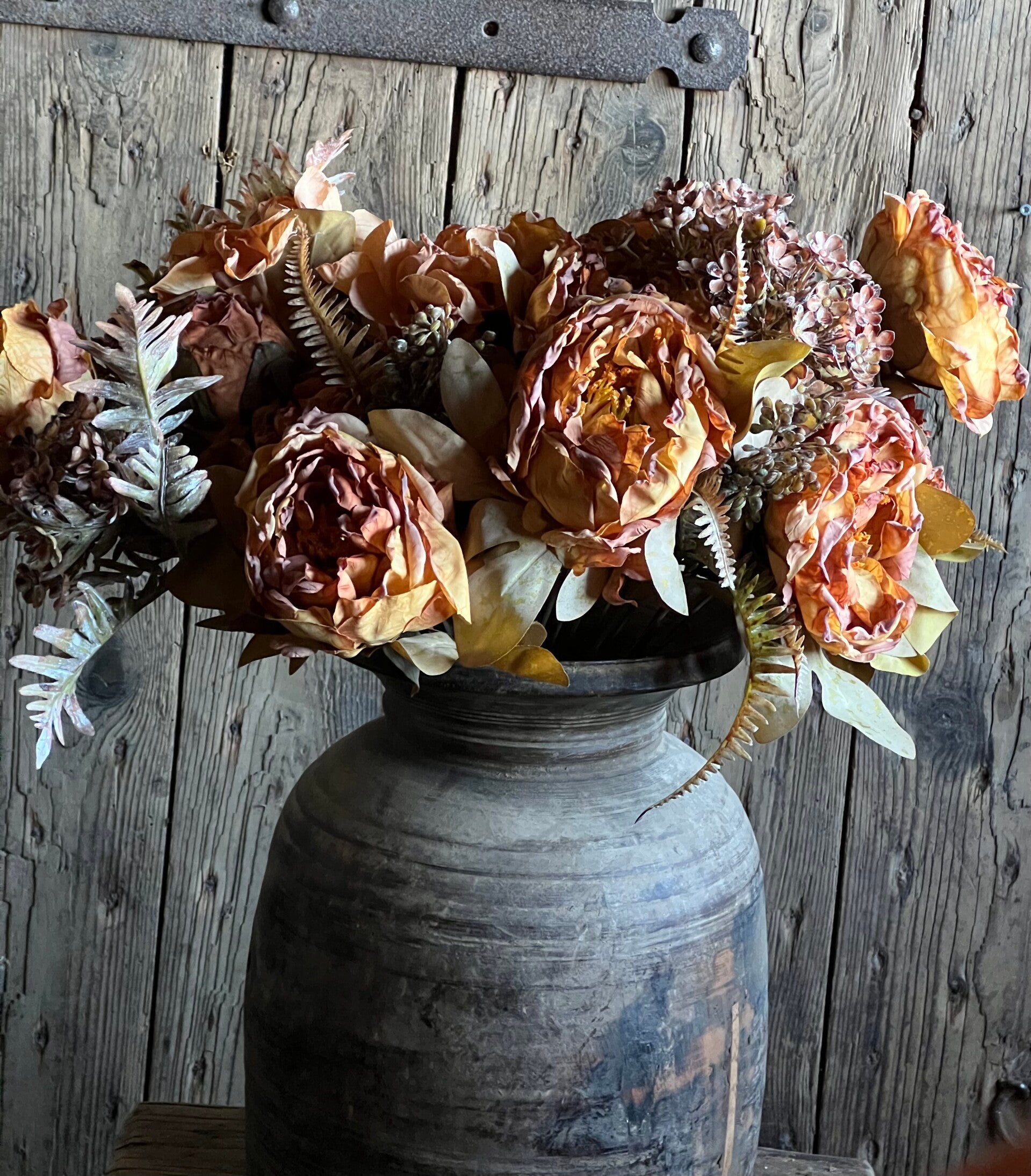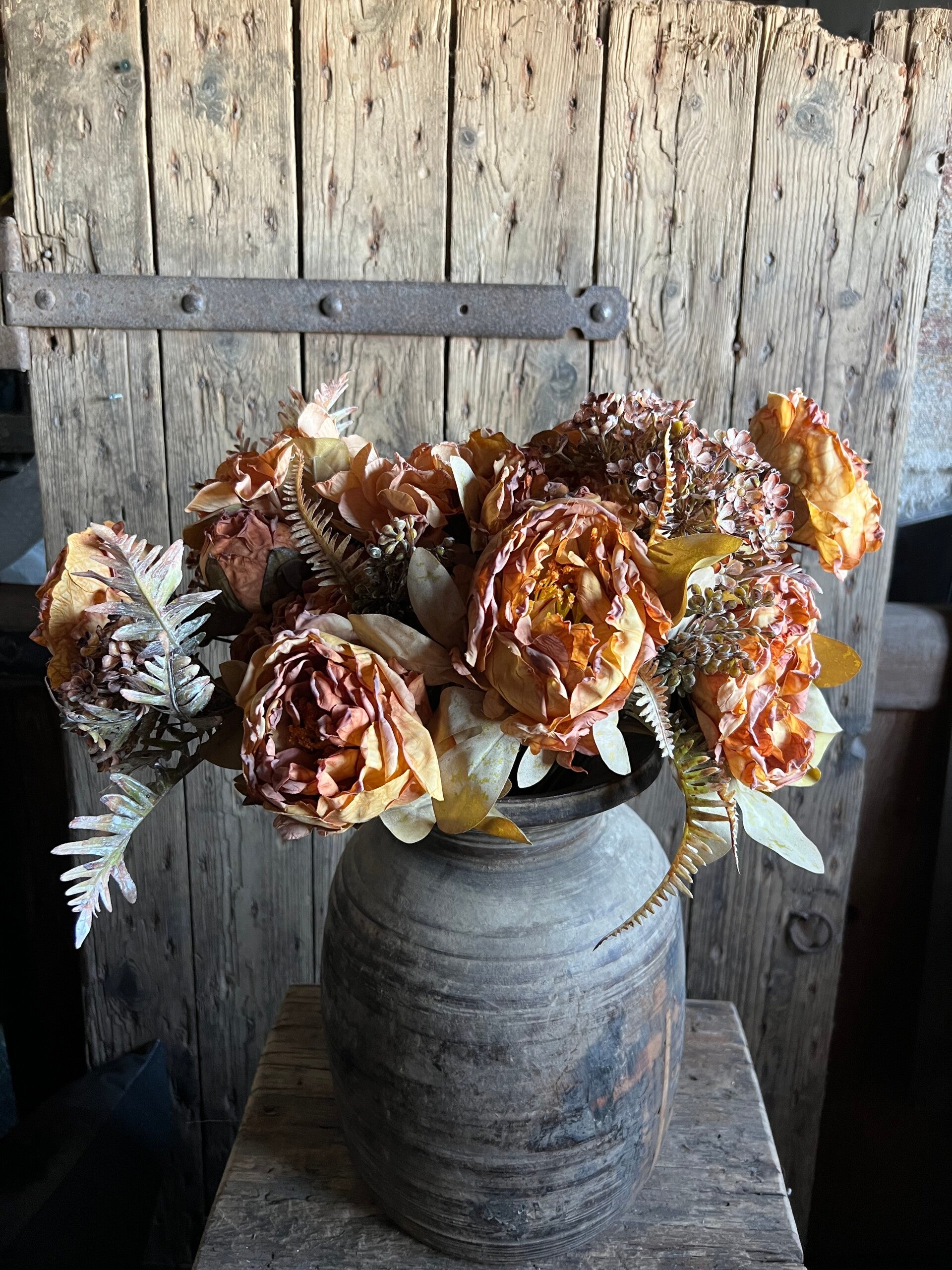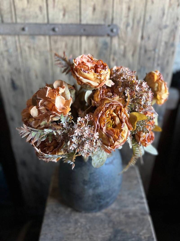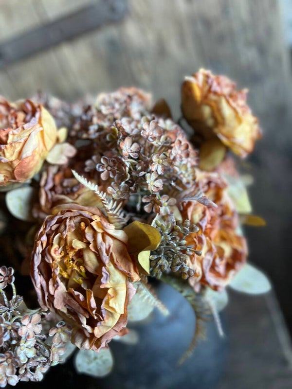 Rijk gevuld boeket met rozen, hortensia en diverse opvulstelen
