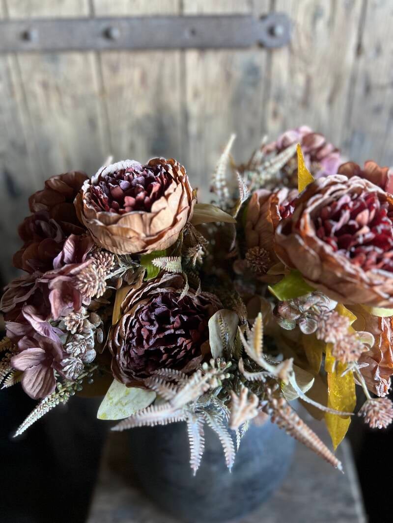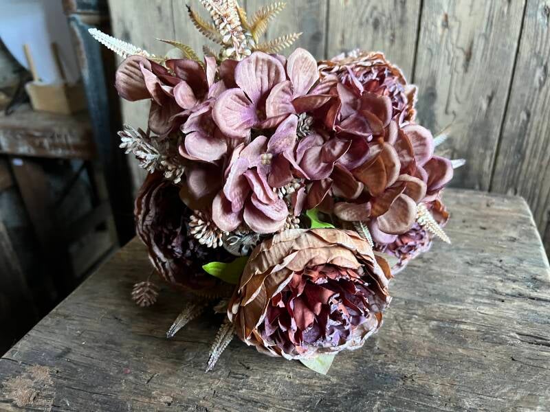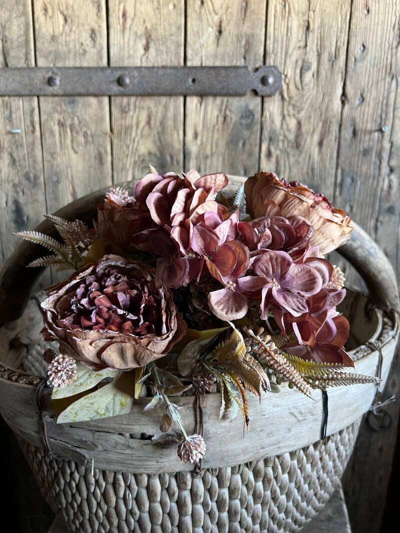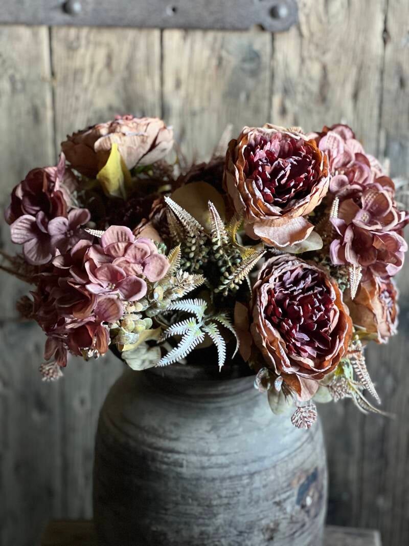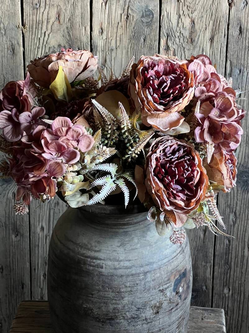 Rijk gevuld boeket met rozen, hortensia en diverse opvulblad/stelen