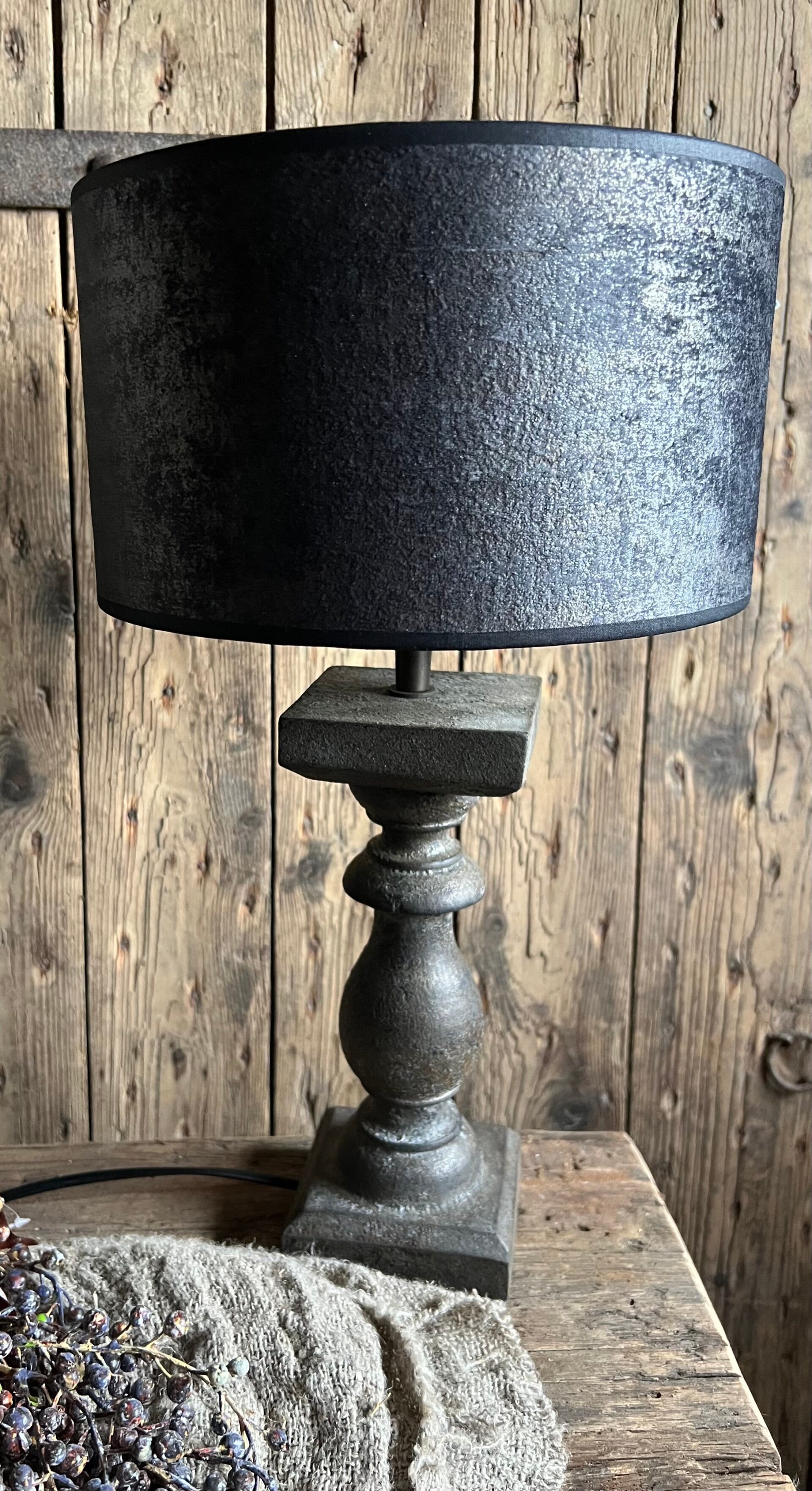 Houten grijze lampenvoet met de uitstraling van verweerd steen: een stoere, authentieke old-look sfeermaker voor elk interieur.
