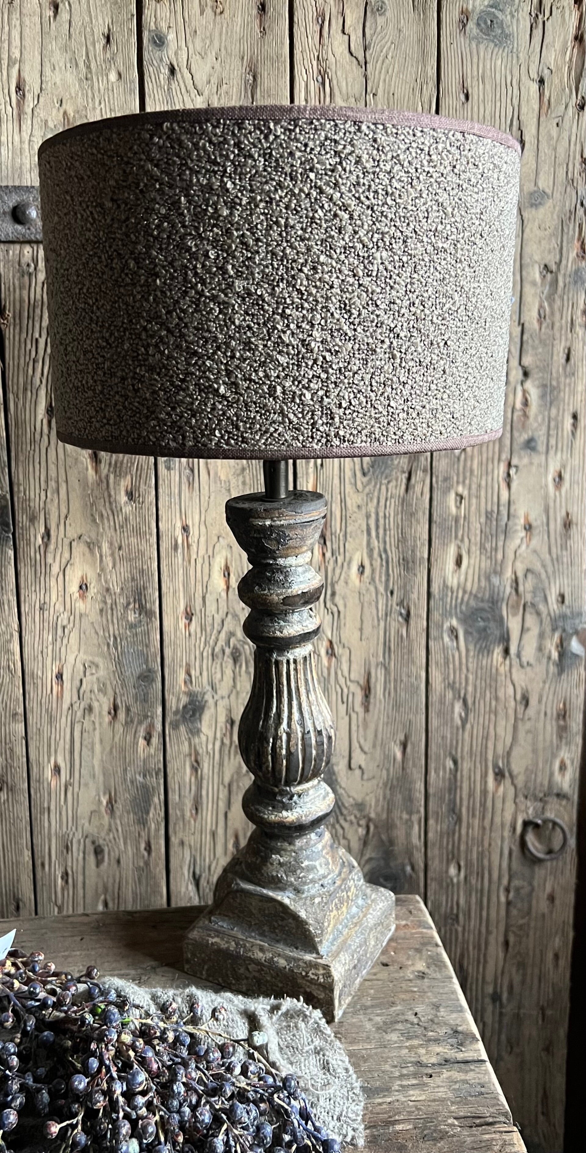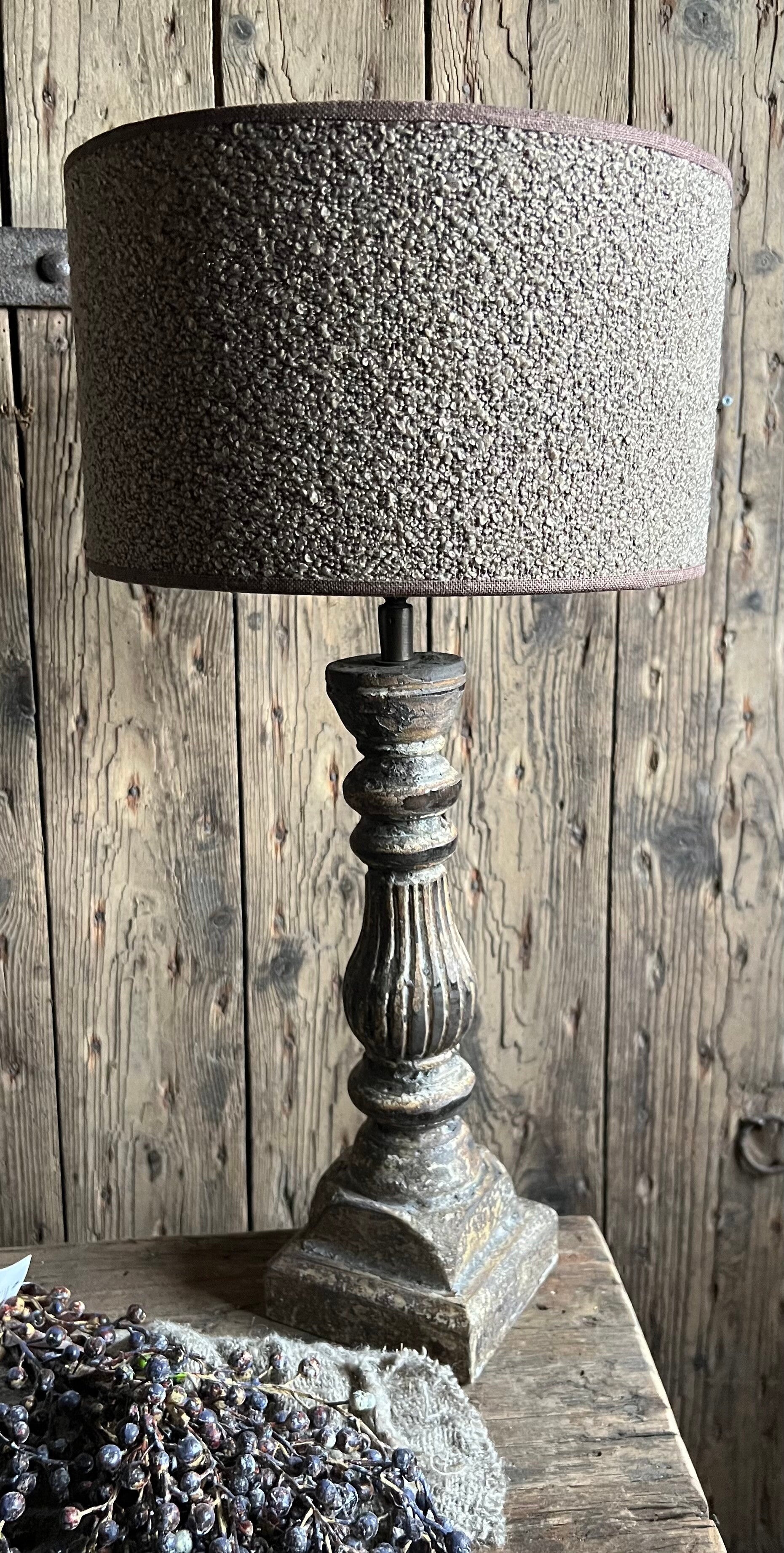 Houten baluster oud/ steenlook voet met taupe bruinige kap