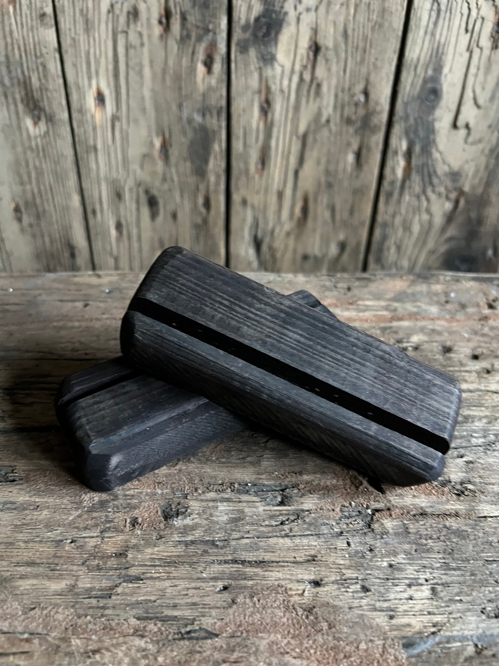 Elke houten houder is uniek. De ene is wat lichter van kleur dan de ander.