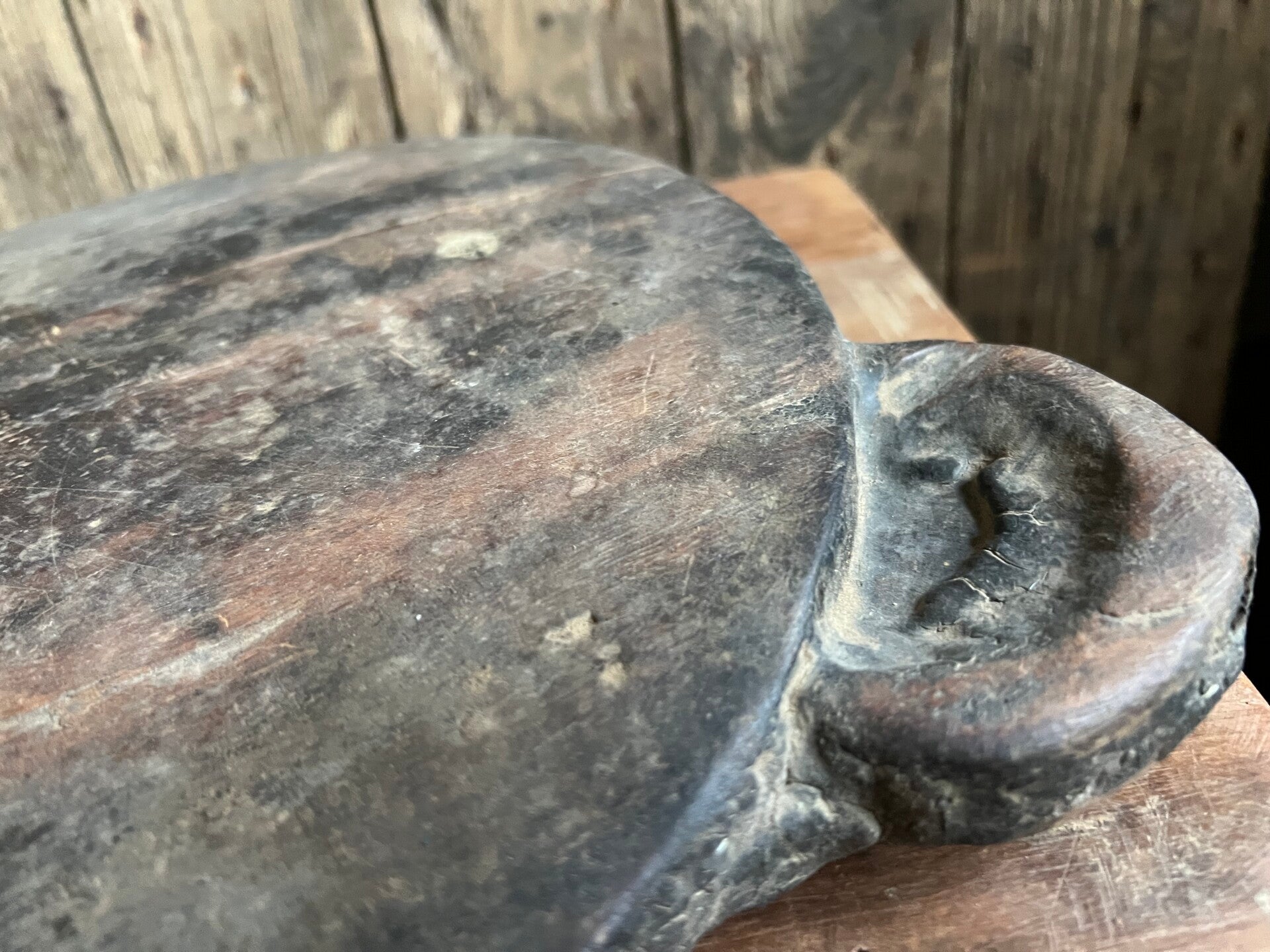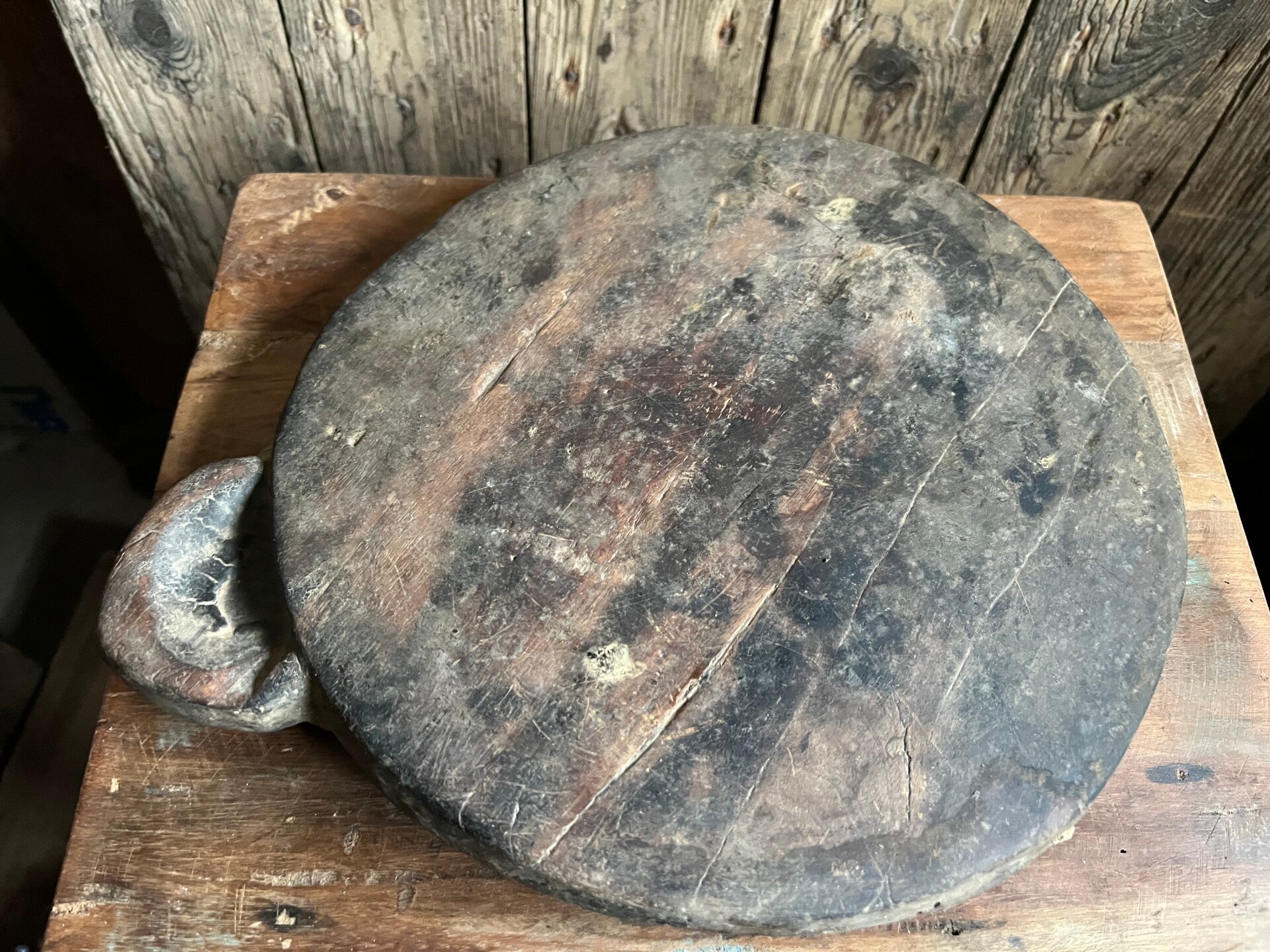 Deze oude authentieke bajot is een uniek stuk met sporen van gebruik die zorgen voor een warme, landelijke uitstraling.