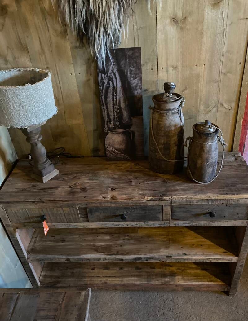 Gemaakt van oud hout, geen strakke kast maar geeft het interieur wel een stoer en landelijk uitstraling