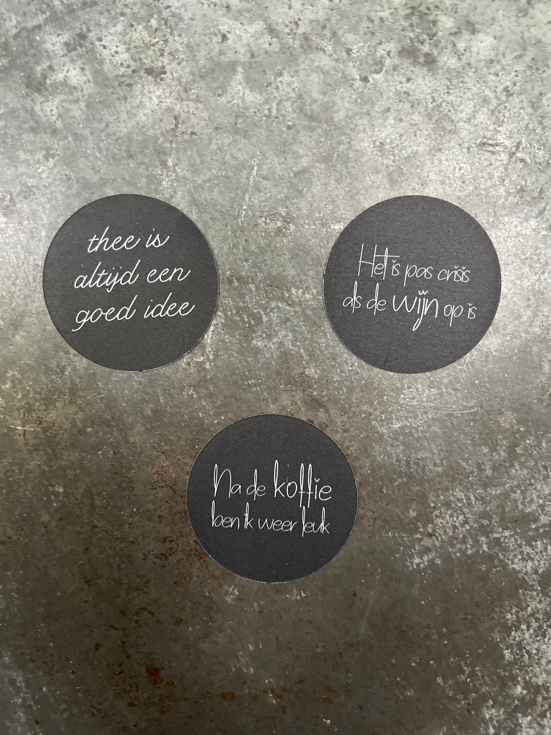 Magneet rond met tekst zwart