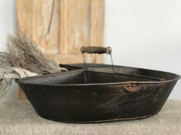 Dienblad is verdeeld in vier vakken, kleur zwart/roest.