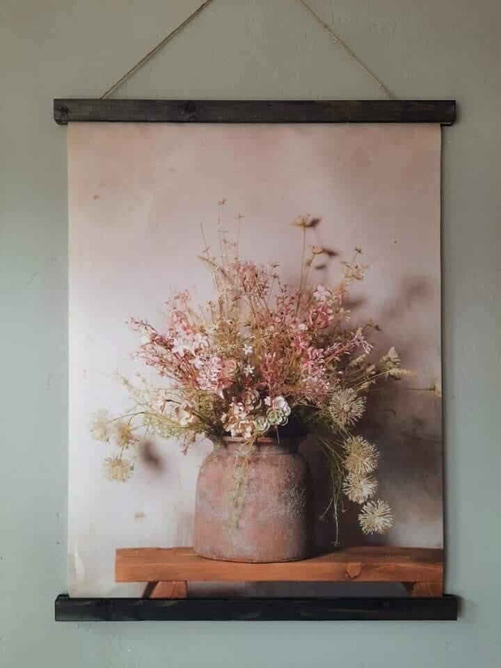 Prachtig voor in uw tuinhuis, overkapping of serre, maar ook in huis komt dit wanddoek goed tot zijn recht