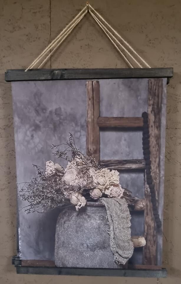 Prachtig voor in uw tuinhuis, overkapping of serre, maar ook in huis komt dit wanddoek goed tot zijn recht