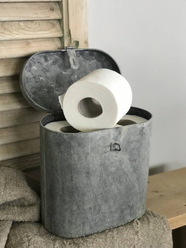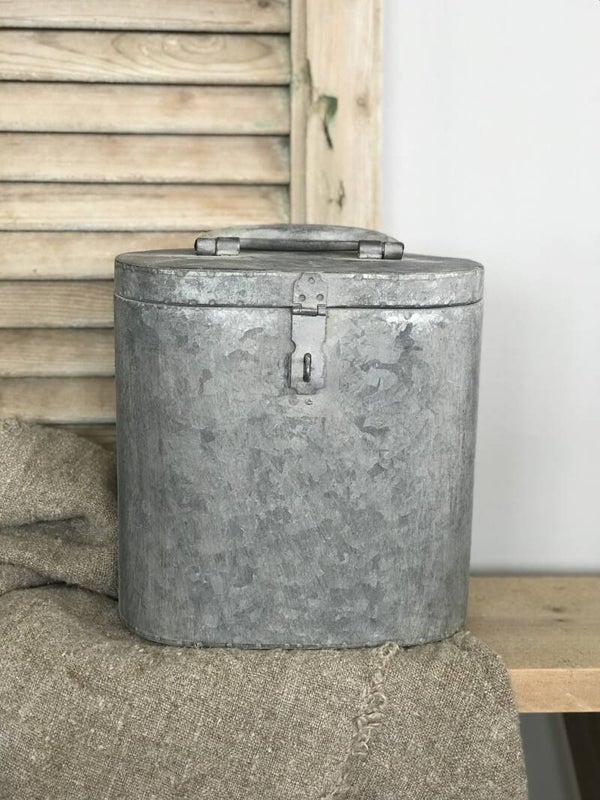 Mooie zinken doos met deksel, handig om bijvoorbeeld uw wc rollen in op te bergen.