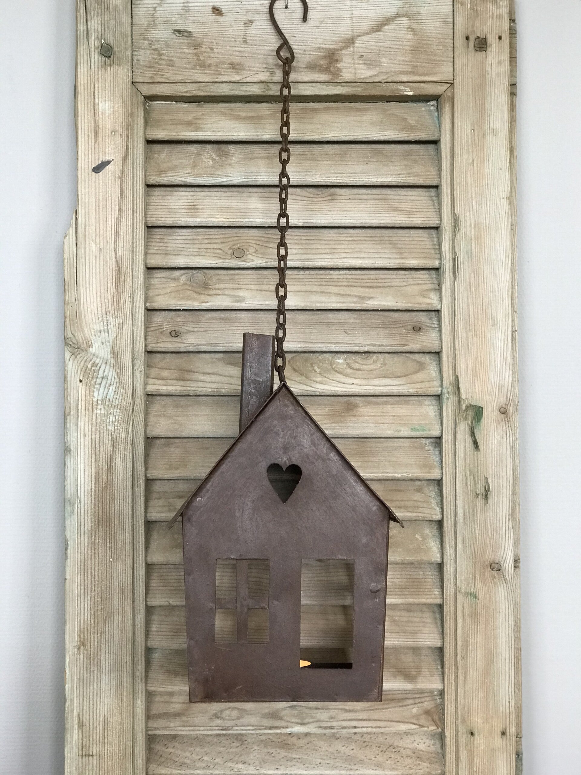 Het huisje kan hangen, er zit een kettingkje aan met een haak.