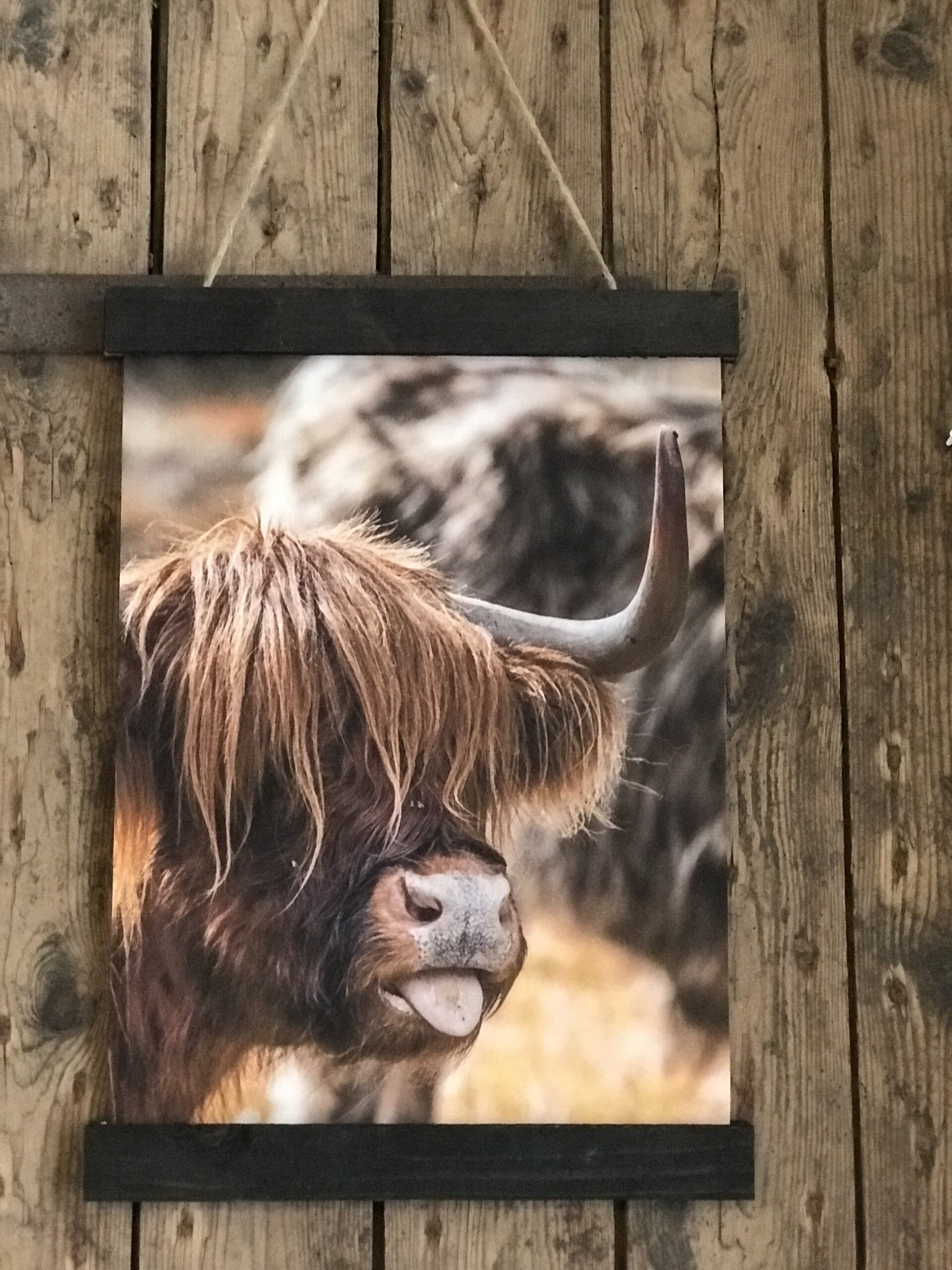 Kleine wanddoek Schotse hooglander steekt tong uit