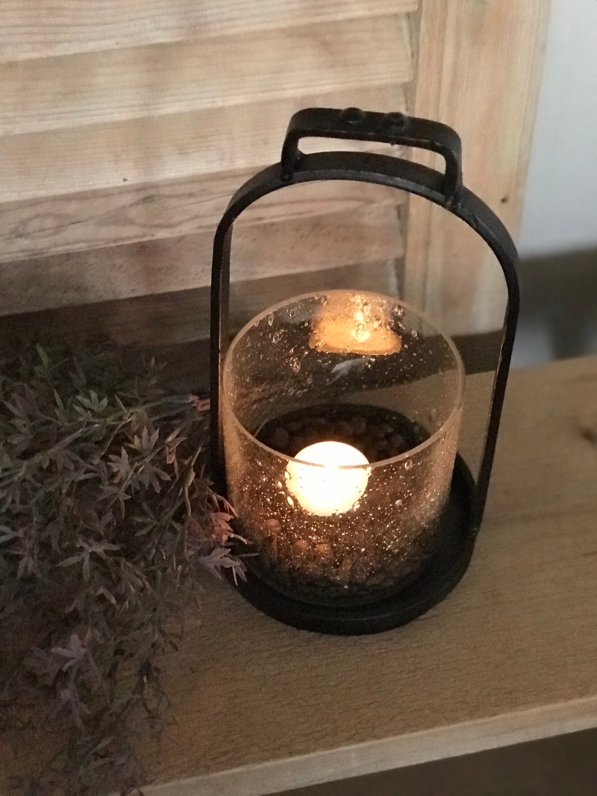 Een sfeervolle waxinehouder of met een kleine stompkaars erop.