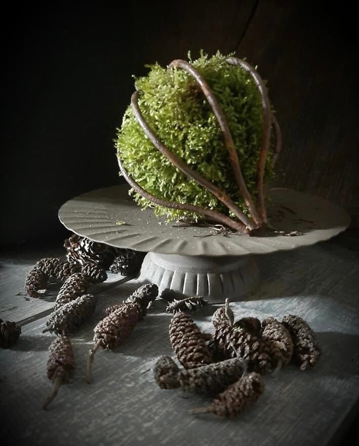 Maar ook erg leuk in het voorjaar met wat mos en blauwe/witte druifjes erin of veertjes en kwarteleitjes.