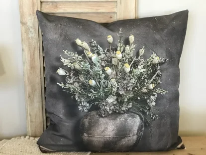 Bijpassende kussens, voor bij de tuinposters, wanddoeken en de houten lijsten met doek.