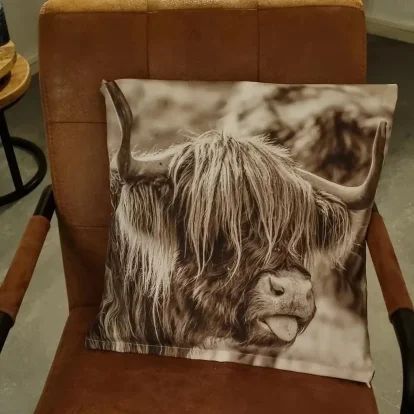 De kussen wordt aan beide zijde bedrukt met de afbeelding.