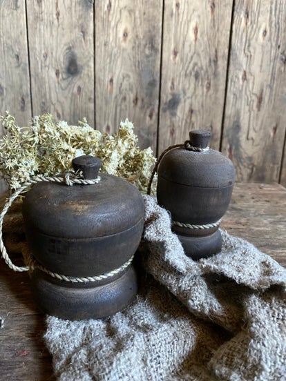 Deze prachtige craquele pot met deksel is van hout. Uniek en authentiek