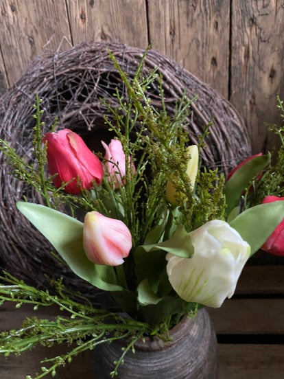 Tulp open, 1 bloem Ø 13 cm, 2 bladeren 21 x 7,5 cm