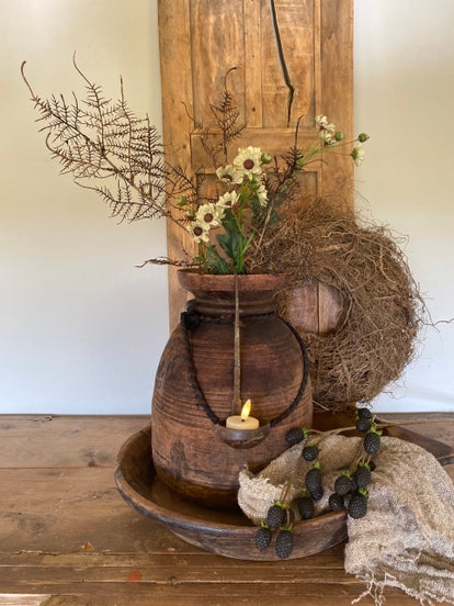 Prachtig te combineren met het bosje taupe takken met propjes en coniferen