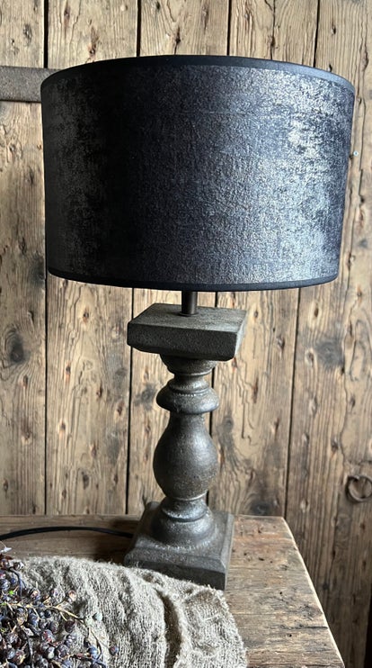 Houten grijze lampenvoet met de uitstraling van verweerd steen: een stoere, authentieke old-look sfeermaker voor elk interieur.