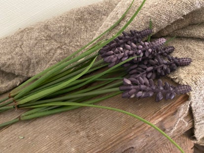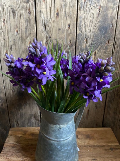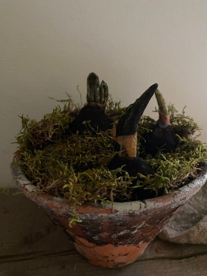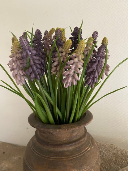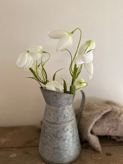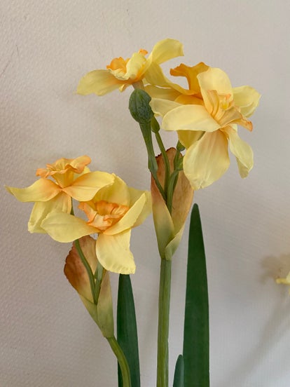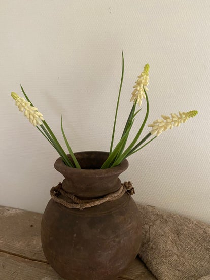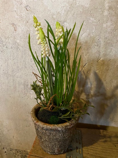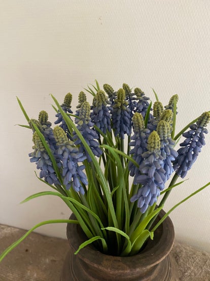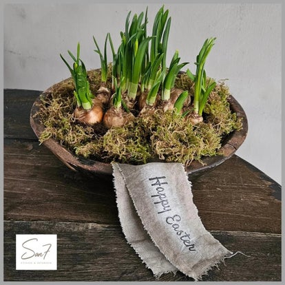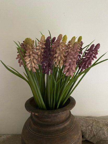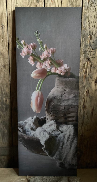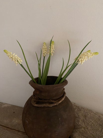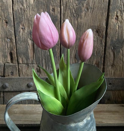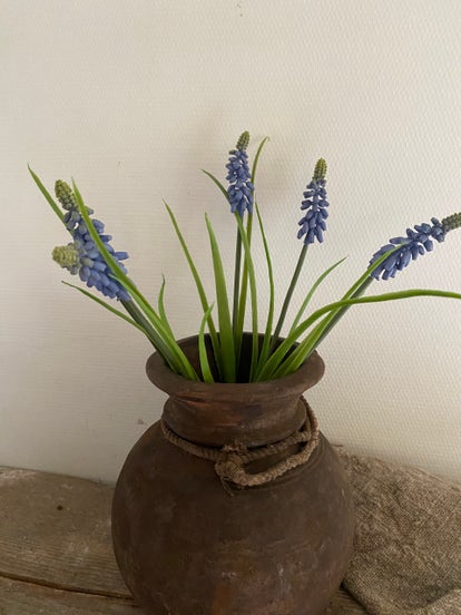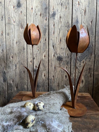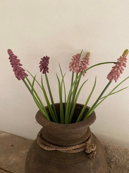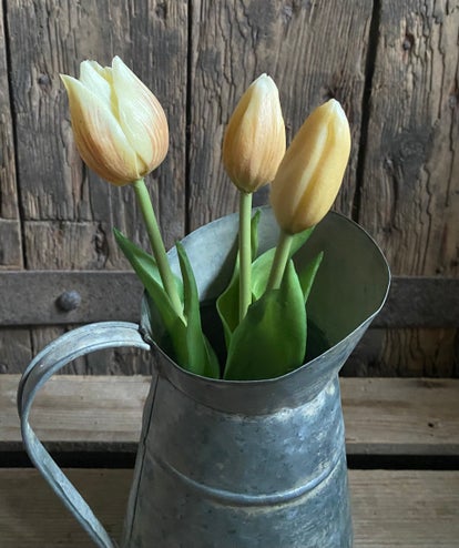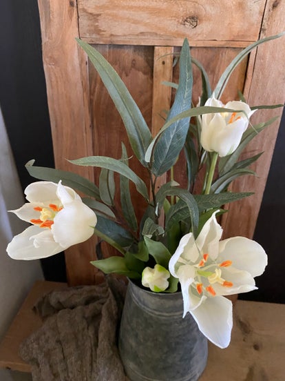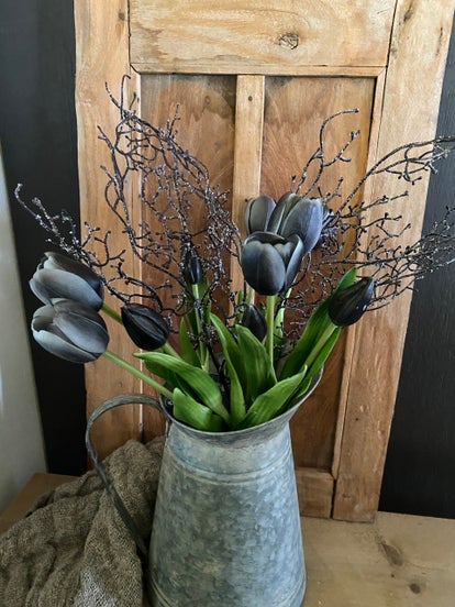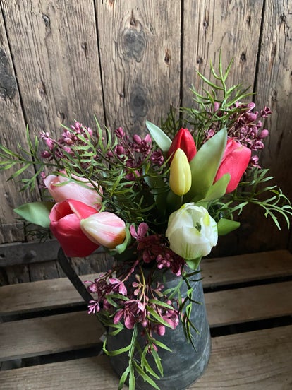 Prachtig tussen de tulpen van 30 cm en wat eucalyptus.