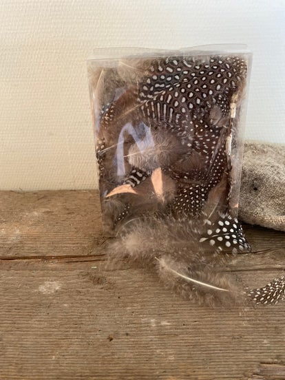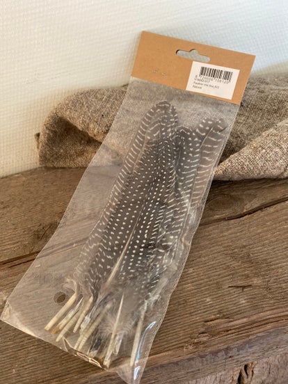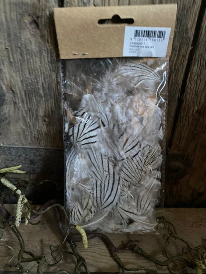 Doosje met 9 glazen eitjes gevuld met veertjes